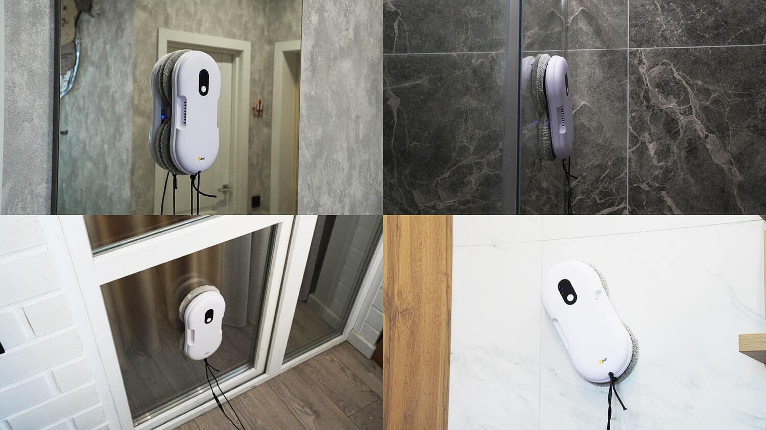 Šis robotas taip pat gali būti naudojamas plytelėmis išklotoms sienoms, dušo kabinoms ir veidrodžiams valyti.