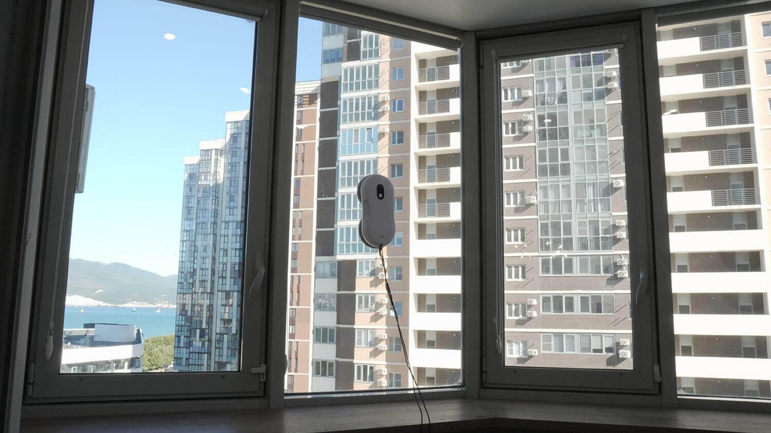 - Robotas turi ploną korpusą, kuris leidžia jį naudoti ant langų su grotomis.