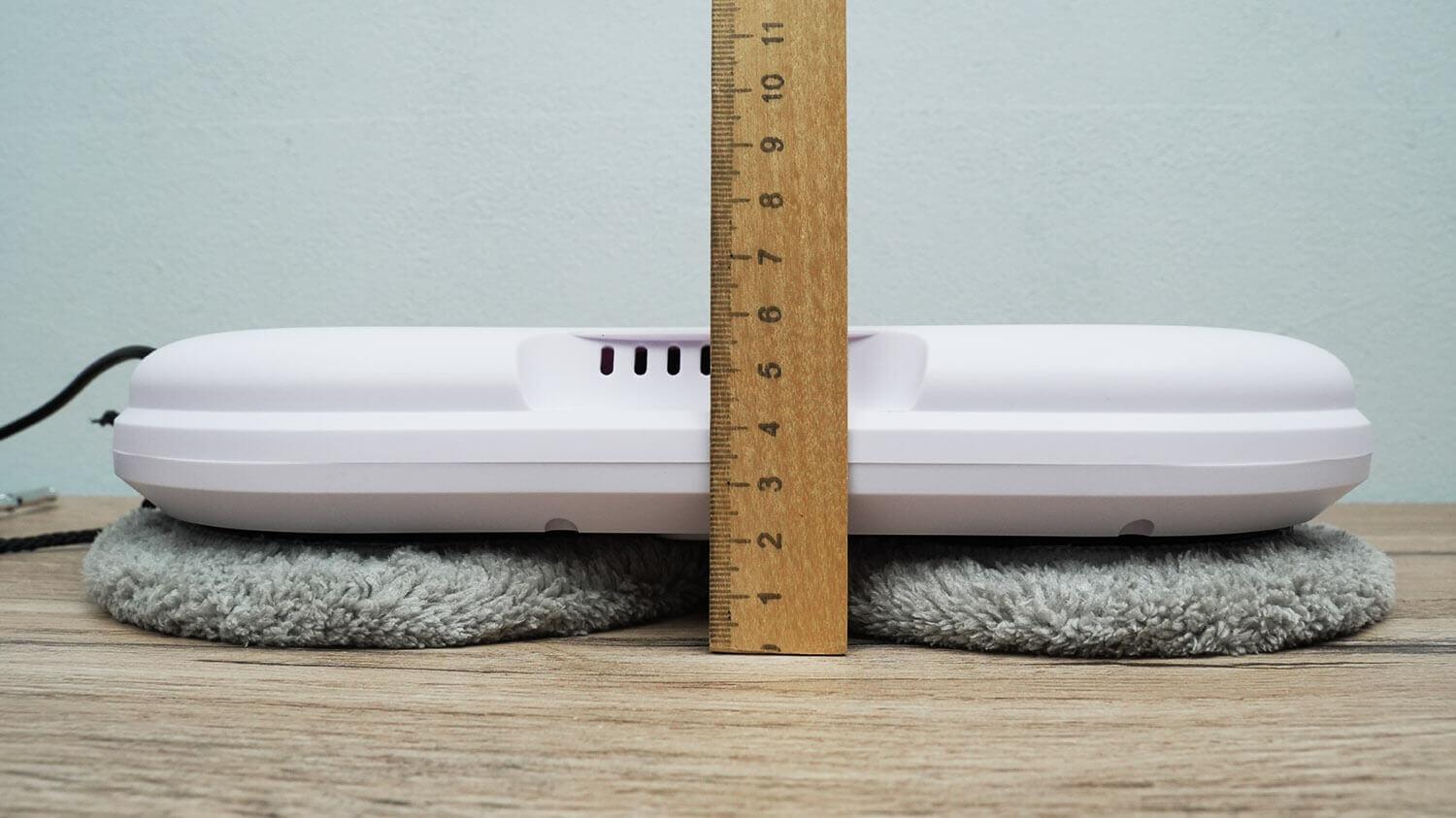 Korpuso aukštis yra 59 mm – tai labai geras aukštis. Robotas gali būti naudojamas langams su grotelėmis ir kitiems paviršiams valyti, kur yra ribota erdvė, kad būtų lengva pasiekti.