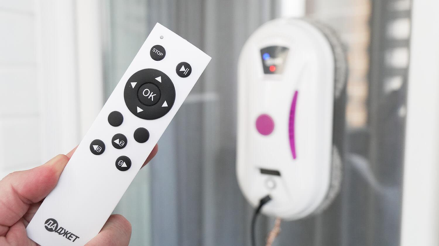 Langų valymo robotas valdomas pridedamu nuotolinio valdymo pultu. Jame yra mygtukai valymo procesui sustabdyti, paleisti / pristabdyti, rankiniam valdymui ir trims automatiniams režimams: aukštyn, tada žemyn, kairėn ir žemyn ir dešinėn. Dvigubo praėjimo režimo nėra.