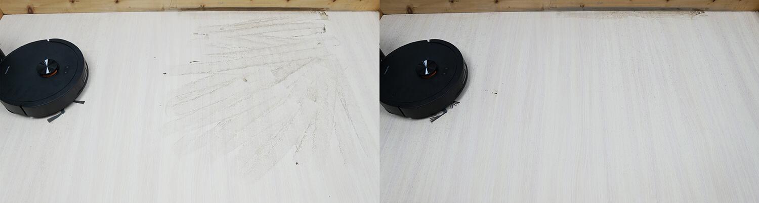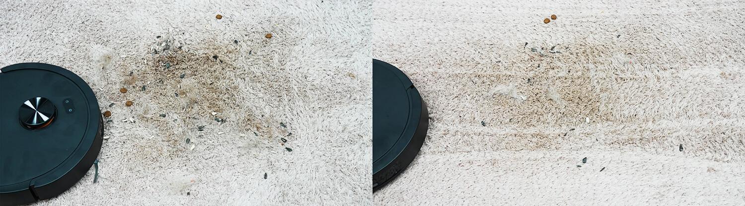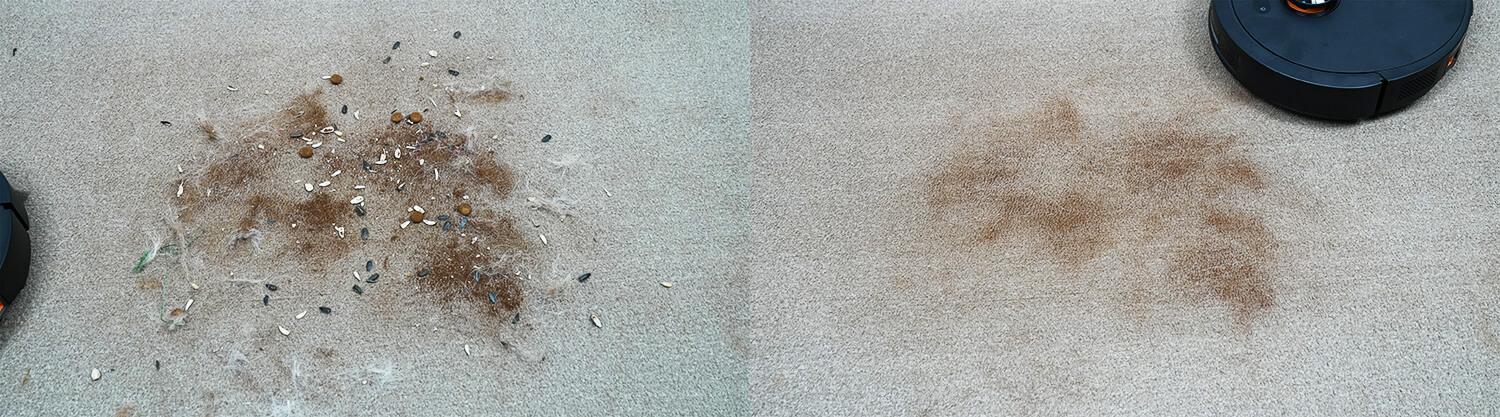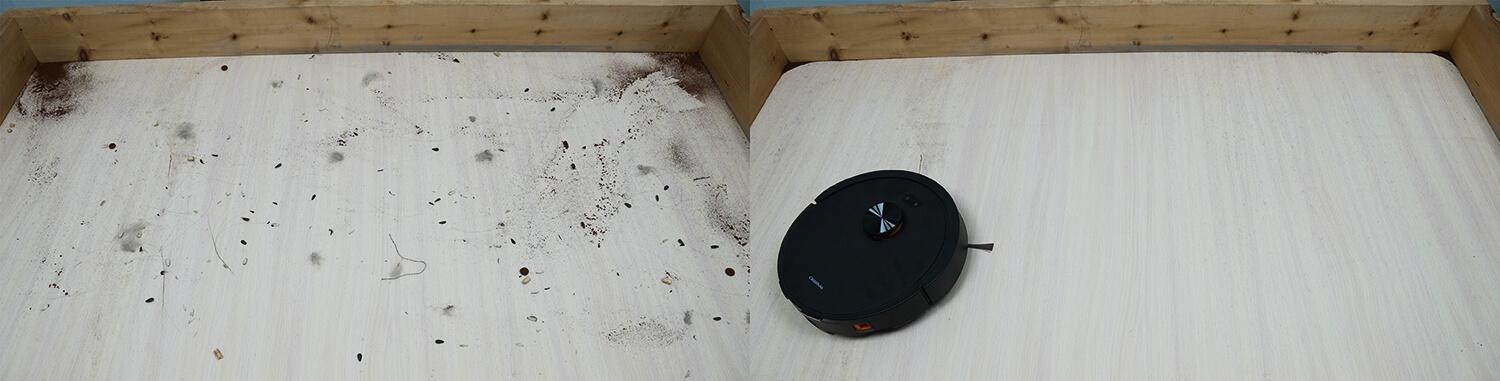 Vienas iš svarbiausių bandymų yra patikrinti roboto faktinę siurbimo galią. Tyliuoju režimu robotas sugebėjo iš dalies pašalinti šiukšles iš 2 mm tarpo. Standartiniu režimu jis šiek tiek geriau išvalė 2 mm tarpą. Vidutiniu režimu rezultatas nepakito. O galingu režimu robotas sugebėjo gerai išvalyti 2 mm tarpą. Apskritai rezultatas yra gana standartinis. Negaliu patvirtinti tariamos didesnės siurbimo galios.