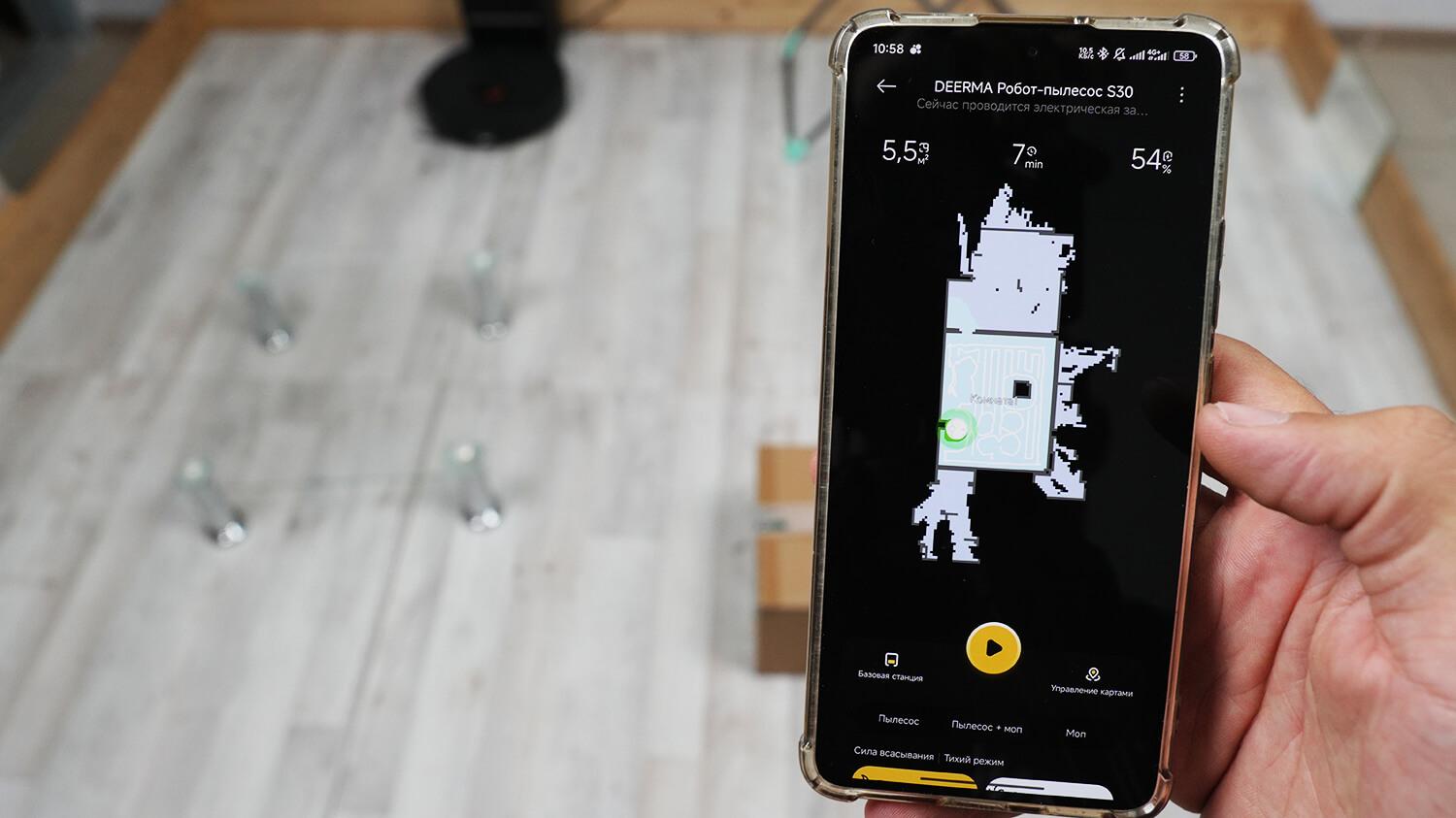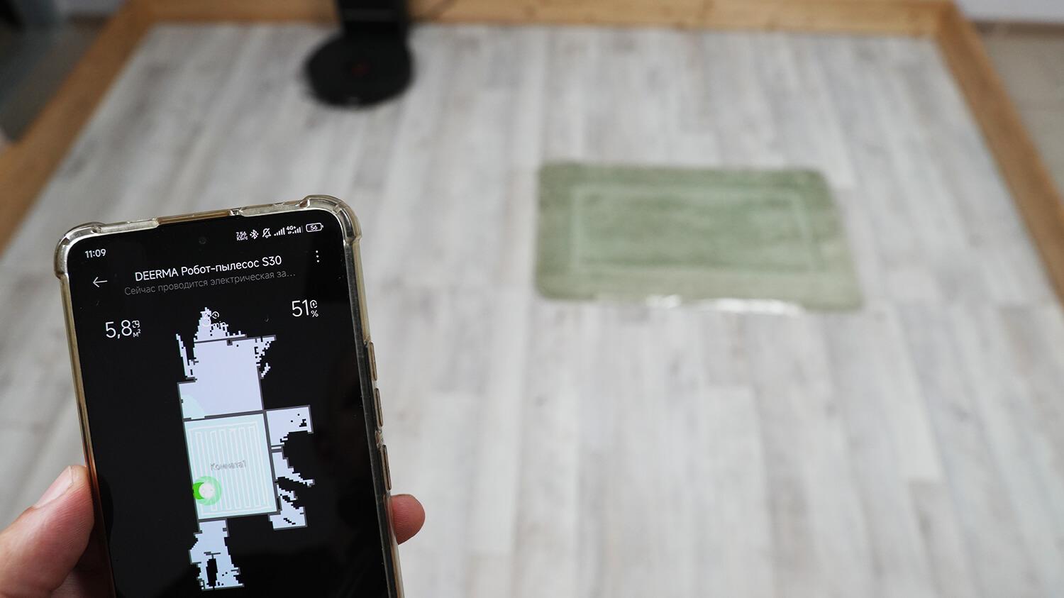 Kalbant apie navigaciją namuose, „Deerma DEM-S30“ valo kambarį po kambario, pirmiausia palei perimetrą, o tada vingiuotu būdu. Valymo greitis yra didelis, nelieka neišvalytų vietų. Šis testas buvo sėkmingas.