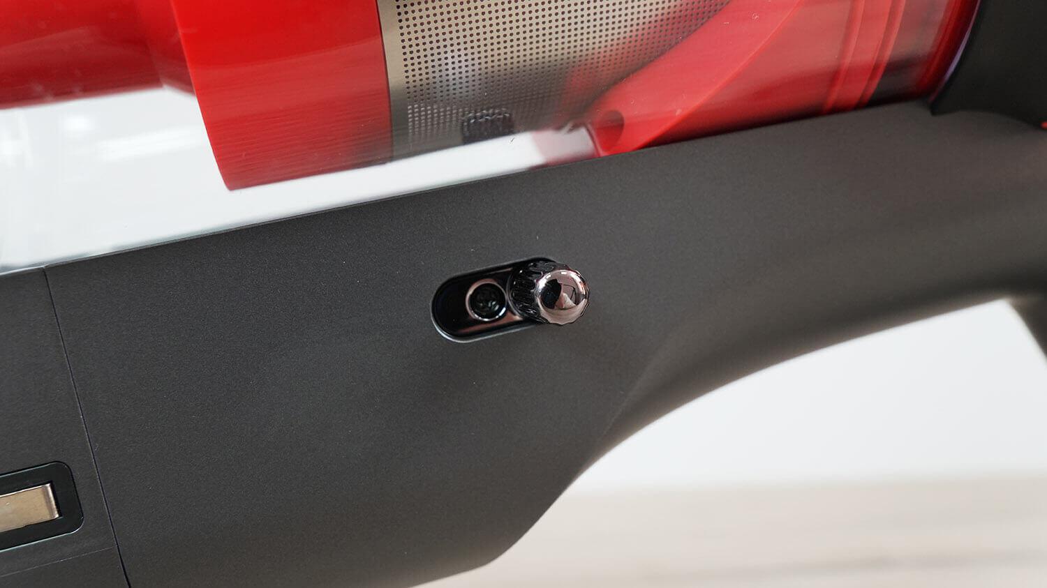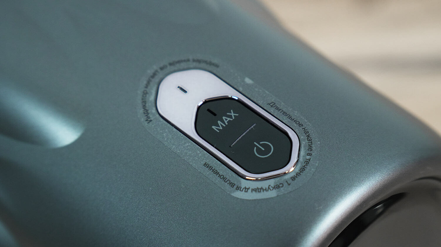 Viršuje yra du mechaniniai valdymo mygtukai: įjungimo/išjungimo ir maksimalios siurbimo galios. Yra tik du veikimo režimai: standartinis numatytasis režimas ir maksimali siurbimo galia. Šalia mygtukų yra būsenos indikatoriaus lemputė.