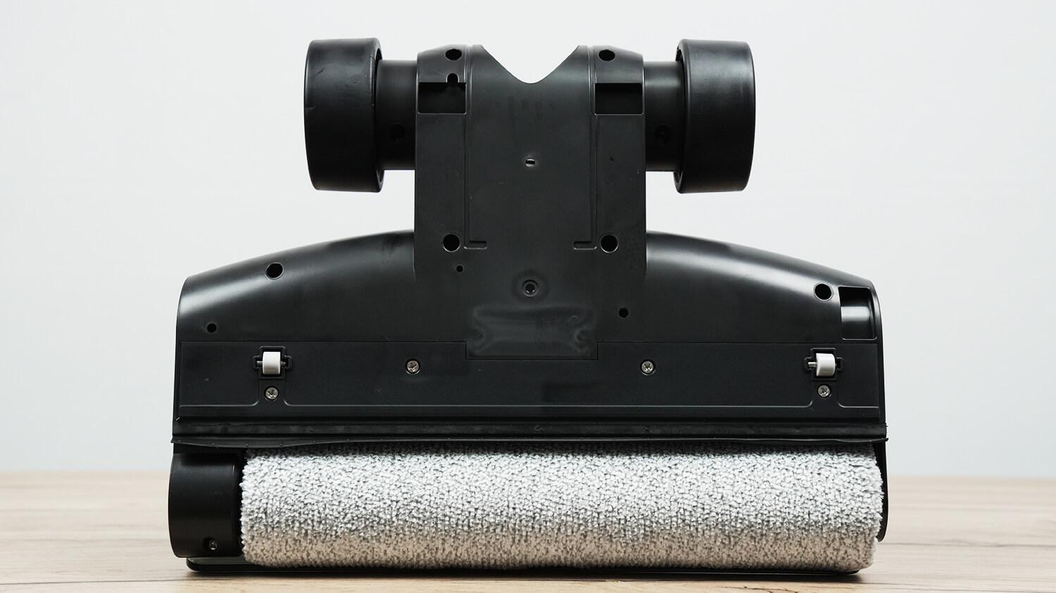 Pažvelkime, kaip veikia „Deerma VX100 Ultra“. Jis suprojektuotas pažįstamu būdu: švarus vanduo tiekiamas į besisukantį volelį, o po to nuotekos surenkamos grandikliais ir įsiurbiamos į nešvaraus vandens baką.
