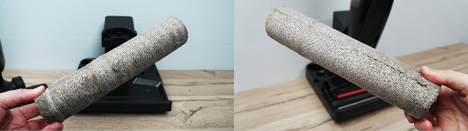 Po visų bandymų buvo patikrintas plovimo dulkių siurblio savaiminio išsivalymo našumas. Nušveitus sunkiai įveikiamas dėmes ir įjungus savaiminio išsivalymo funkciją, volelis buvo labai švarus. Sritis už volelio taip pat buvo švari.