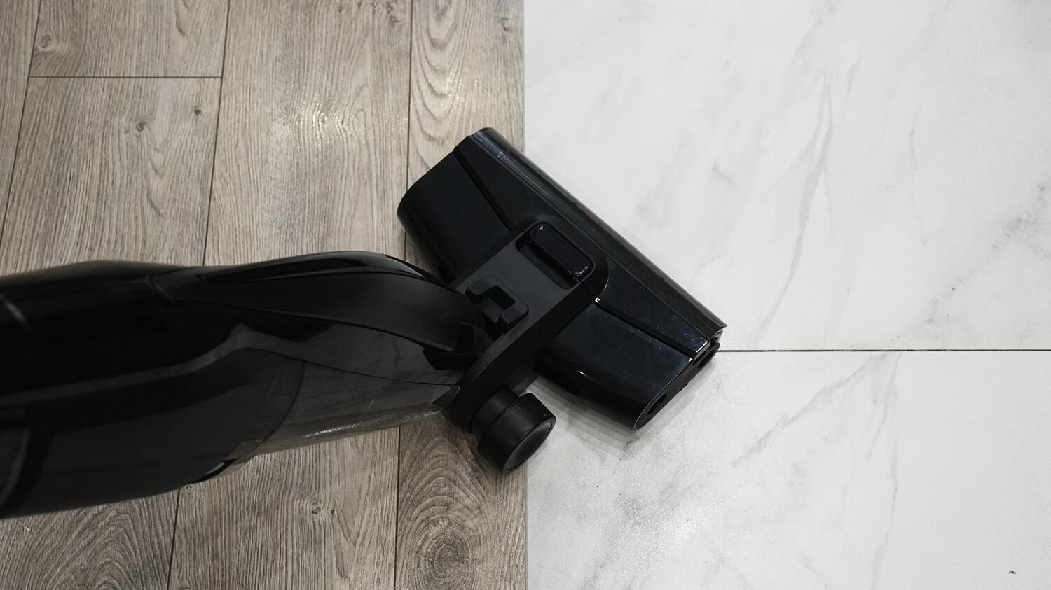 Pereikime prie bandymų. „Deerma VX100 Ultra“ puikiai tinka kasdieniam grindų valymui, tiek ant laminato, tiek ant plytelių. Jis nepalieka dryžių ir, tinkamai naudojamas, nepažeidžia jautrių grindų.