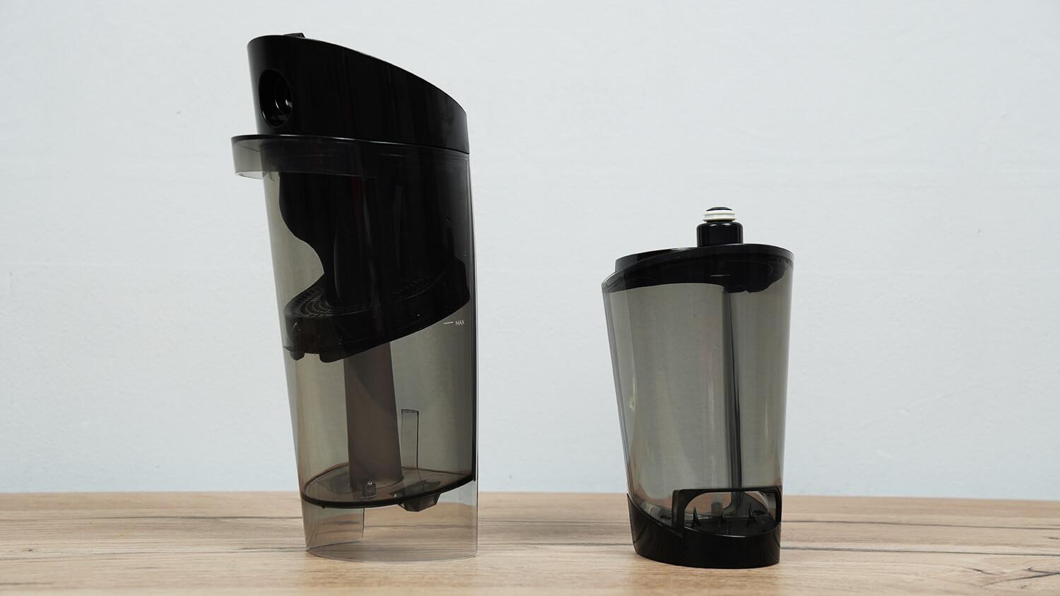 Viršuje sumontuotas 650 ml švaraus vandens bakas. Jo dangtelyje taip pat yra šiurkštus filtras skysčiui filtruoti.