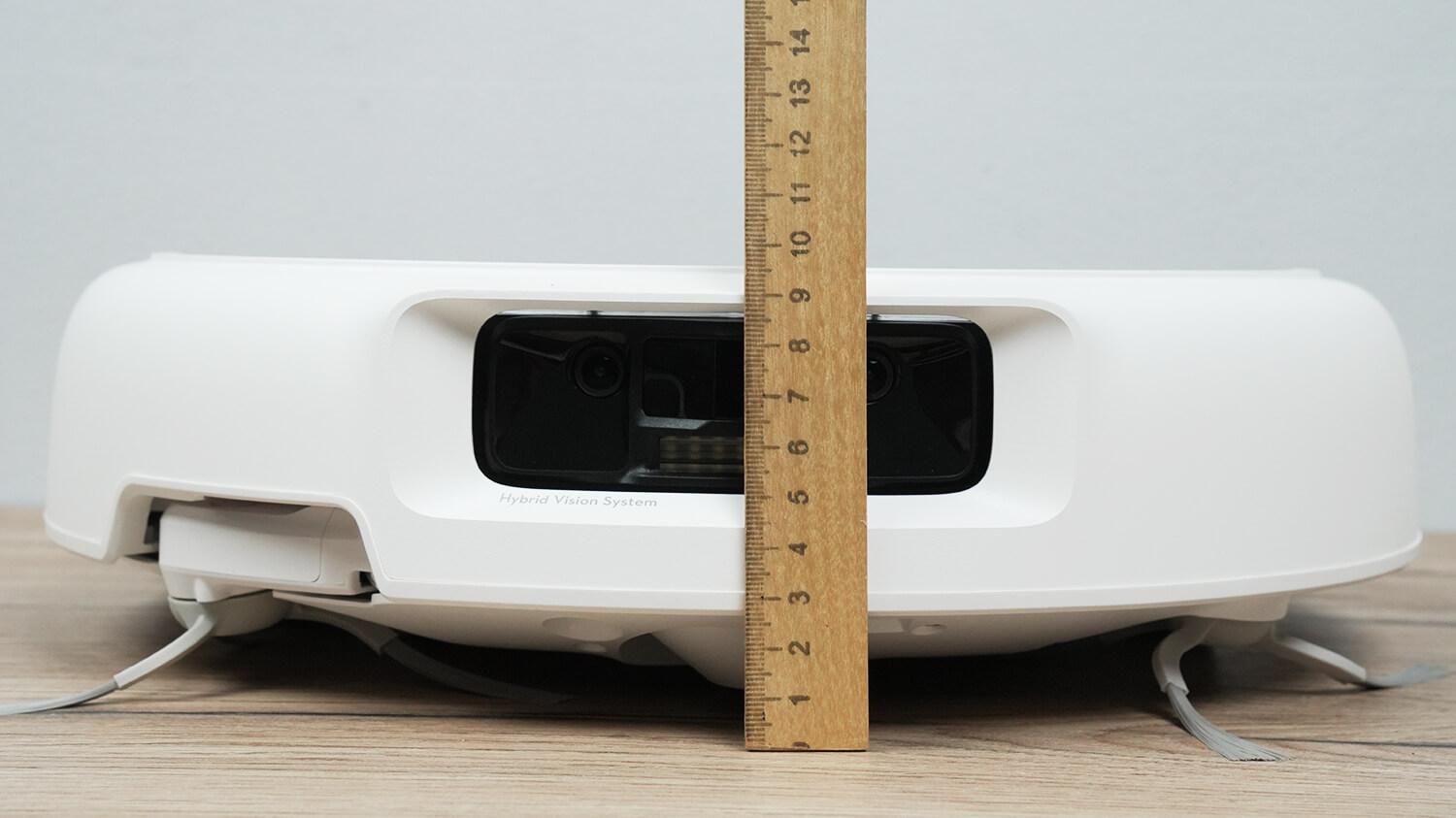 Pats robotas dulkių siurblys yra apvalios formos, korpuso aukštis nurodomas kaip 98 mm, tačiau iš tikrųjų jis yra šiek tiek mažesnis – apie 96 mm.