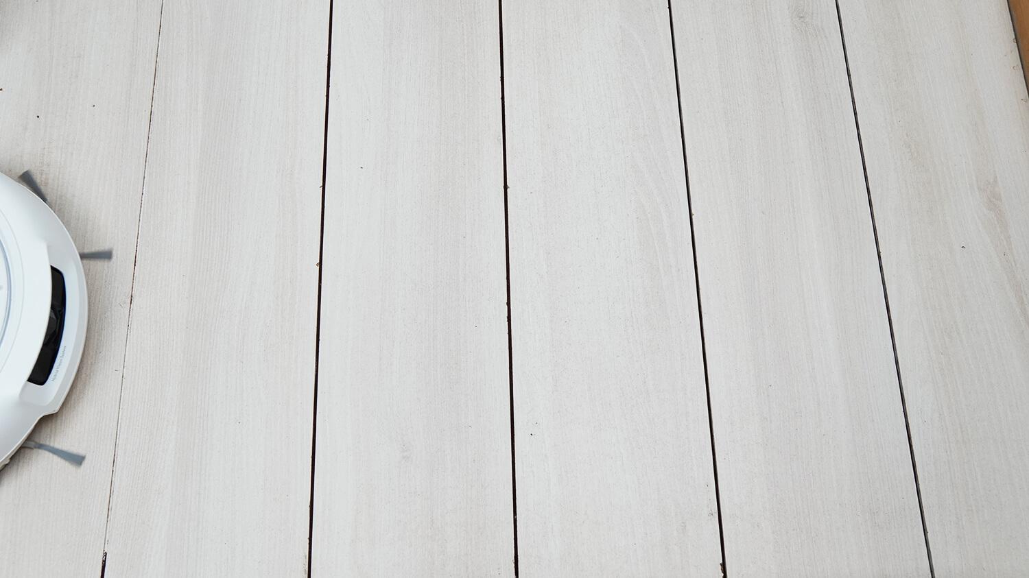 Laminuotų grindų valymo našumas puikus: robotas surinko nuo grindų visas šiukšles, įskaitant dideles, sunkias kačių kraiko granules, kurios dažnai įstringa turbo šepečiuose. Kampų valymas ypač įspūdingas – ištraukiamas šoninis šepetys surenka visas šiukšles. Išoriniai kampai taip pat valomi, nors lieka keletas mažų aklųjų zonų.