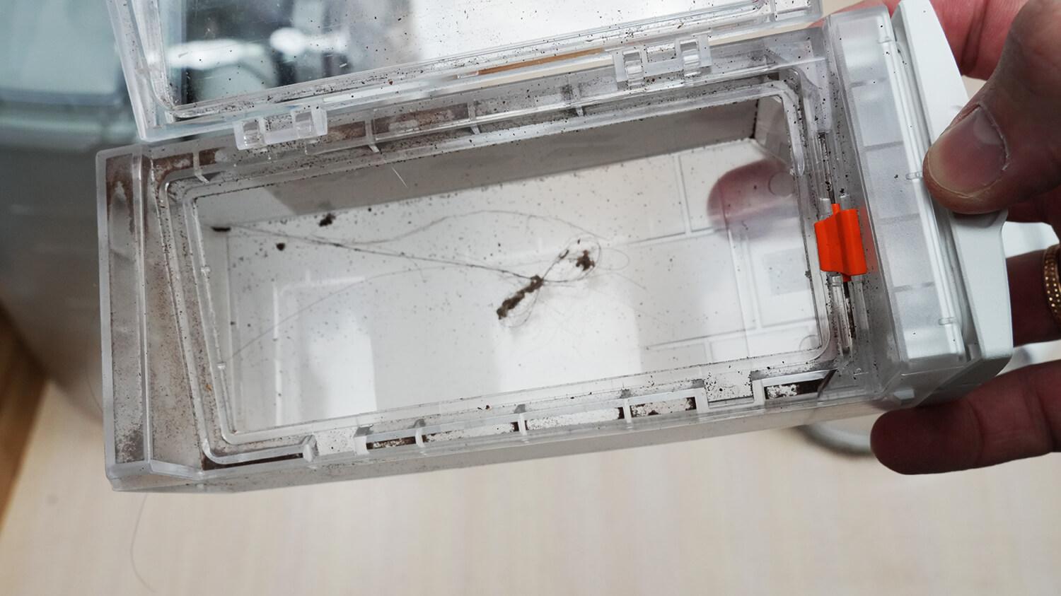 Iškart po „nešvarumų testų“ patikrinau, kaip gerai robotas dulkių siurblys išsivalo. Grąžinau jį į stotelę ir pradėjau savaiminio valymo procesą. Rezultatai nebuvo idealūs, bet manau, kad jie buvo geri. Galbūt nuimdamas ir vėl įdėdamas dulkių surinktuvą užkliuvau plauką.