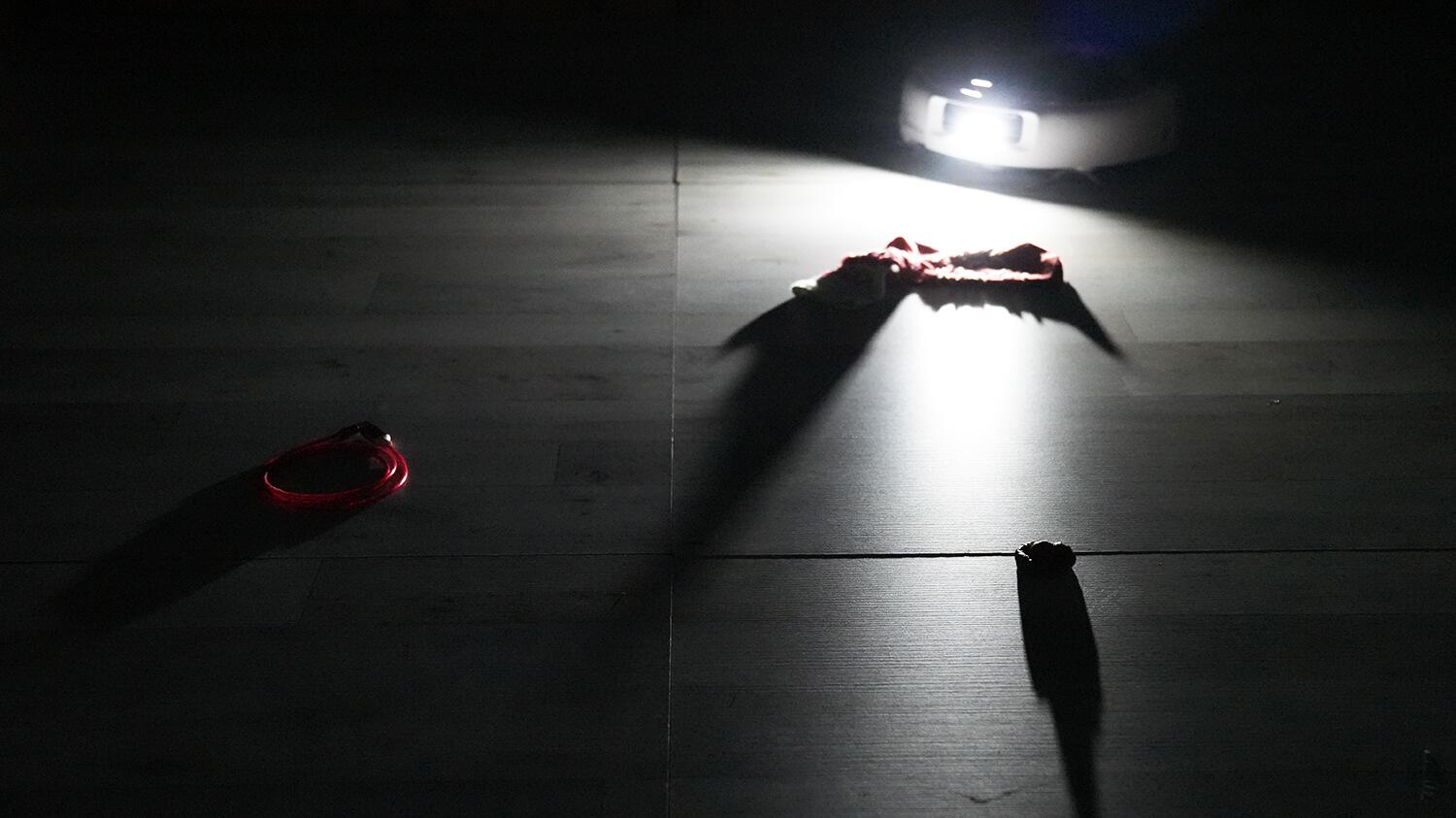 Visiškoje tamsoje „DJI ROMO P“ taip pat sugebėjo atpažinti ir tiksliai apeiti šešis iš šešių namų apyvokos daiktų, tris kojines ir keturis laidus. Deja, jis užkliuvo už vieno iš šešių ir jį sugraužė, o kitų penkių saugiai išvengė. Beveik tobulas rezultatas! Šaunu, „DJI“ inžinieriai!