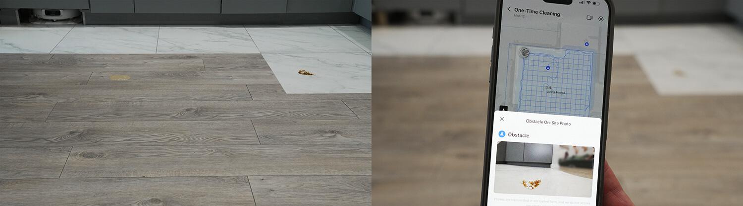 Kalbant apie objektų vengimo sistemą, ji labai gerai įdiegta. Esant geram apšvietimui, „DJI ROMO P“ sugebėjo atpažinti ir tiksliai išvengti visų 6 iš 6 namų apyvokos daiktų, 3 iš 3 kojinių, 4 iš 4 laidų ir 6 iš 6 imituotų naminių gyvūnėlių staigmenų. Vienintelis trūkumas yra tas, kad jutiklių ir kamerų sistema aptinka objektus ant grindų, bet neatpažįsta, kas tiksliai ten guli. Tikėtina, kad tai bus patobulinta atnaujinus programinę įrangą, bet dar negaliu patvirtinti objektų atpažinimo.