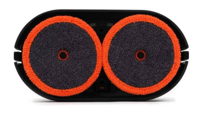 Roboto šluotos apačioje yra maitinimo jungiklis, 60 ml talpos plovimo skydeliai servetėlėms pritvirtinti, į kuriuos vanduo pilamas per guminiais kamščiais uždarytas skylutes, įkraunama baterija ir infraraudonųjų spindulių aukščio skirtumo jutikliai.
