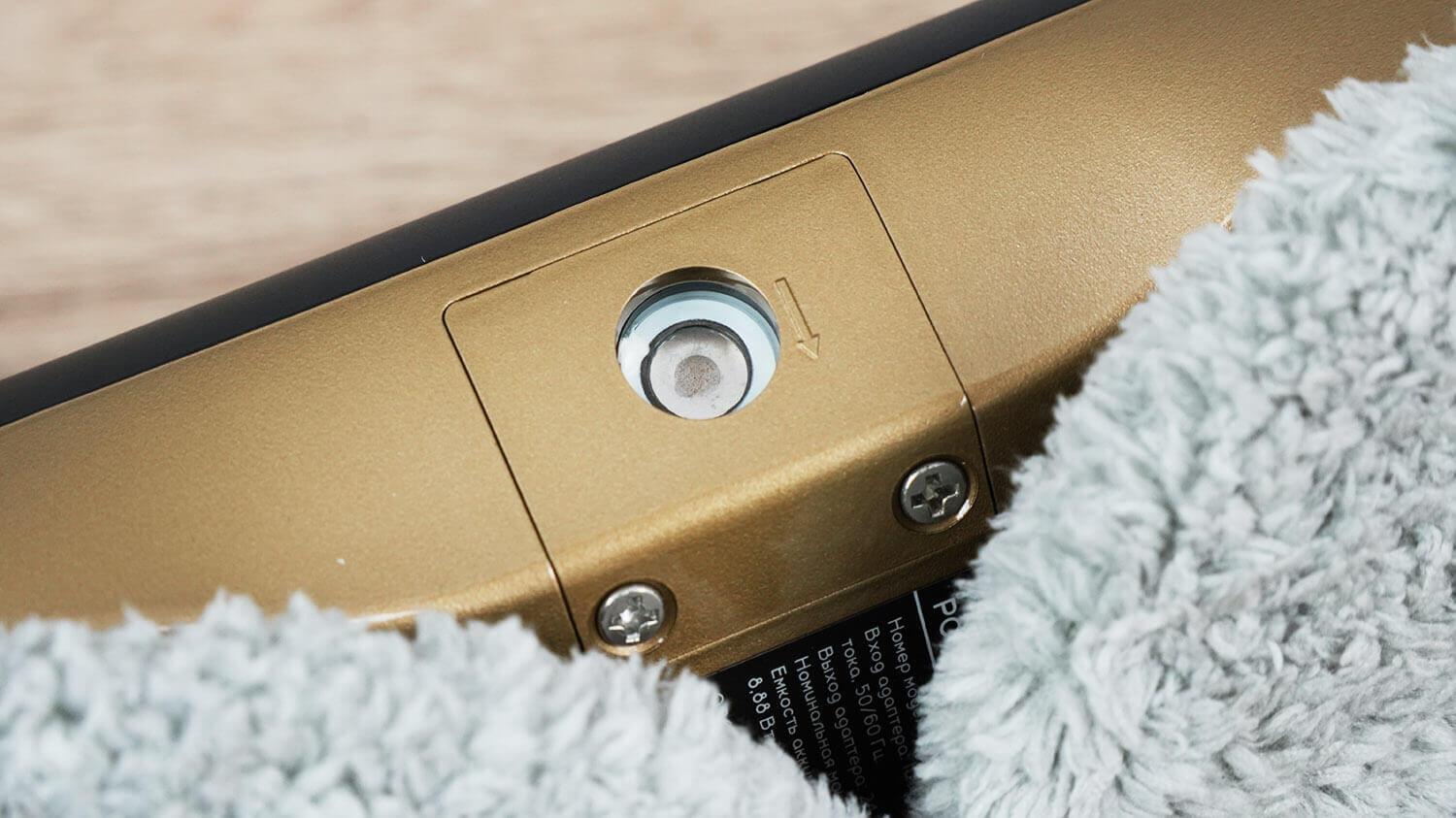 Servetėlių laikikliai prie roboto tvirtinami standartiniais spaustukais. Apačioje matoma lemputė, rodanti roboto būseną, tačiau jos vieta abejotina. Jei servetėlė pritvirtinta prie korpuso, indikatorius tiesiog nematomas.