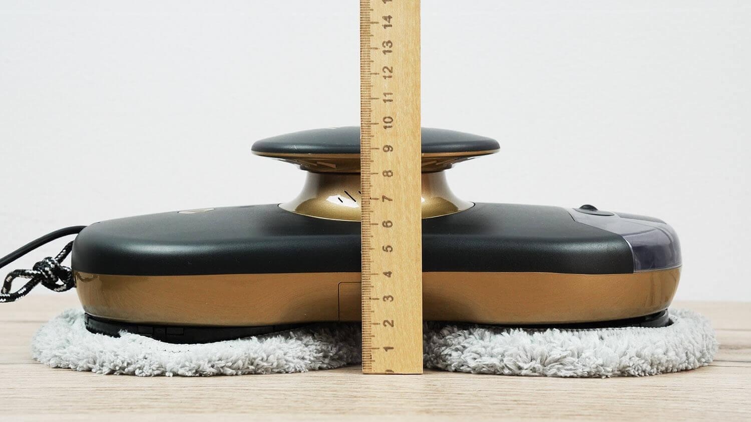Nurodytas korpuso aukštis yra 115 mm, nors roboto iš tikrųjų aukštis yra kiek mažesnis nei 100 mm. Jis turėtų tilpti pro langus su grotomis.