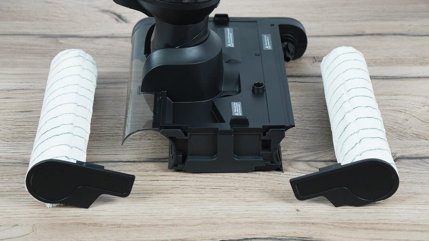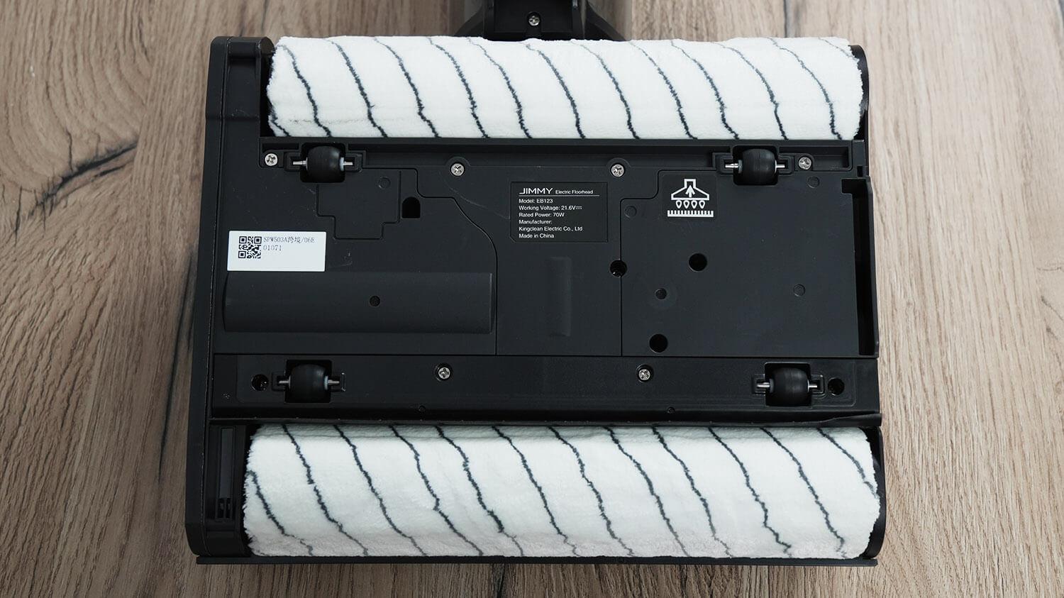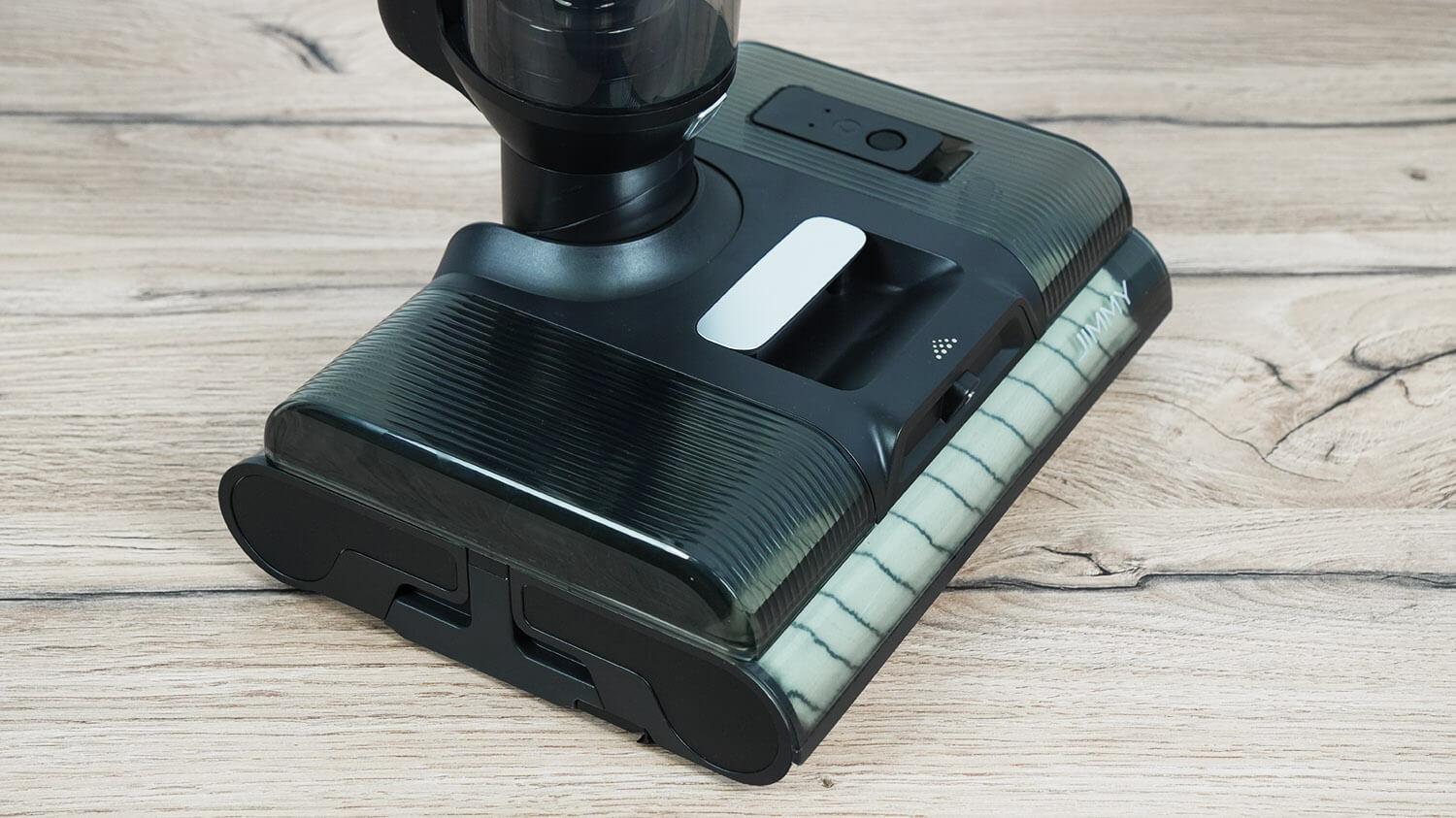Dabar pažvelkime į „Jimmy HW11 Pro Max“ dizainą. Pradėkime nuo valymo modulio. Kaip minėta anksčiau, jį sudaro du voleliai, išdėstyti korpuso kraštuose.