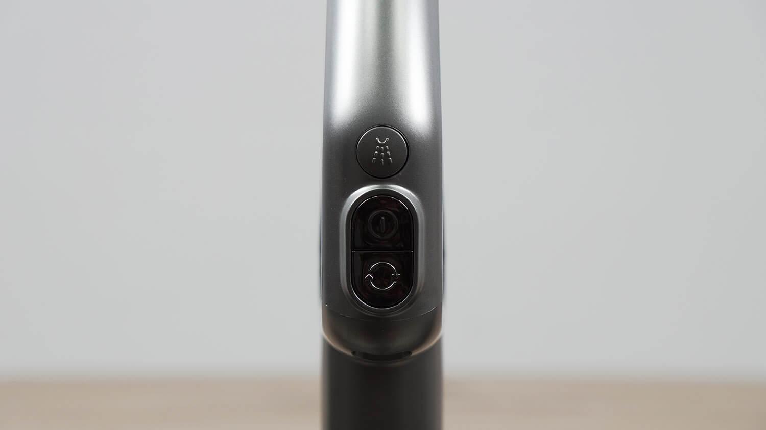 Norėdami valdyti patį dulkių siurblį, pritvirtiname pagrindinį įrenginį. Valdymo mygtukai yra ant rankenos. Jie apima įjungimo/išjungimo, režimo pasirinkimo, priverstinio vandens tiekimo iš antgalio ir savaiminio valymo funkciją. Grindų ir kilimų režimams pridėtas automatinis režimas. Šiuo režimu „Jimmy HW11 Pro Max“ automatiškai reguliuoja siurbimo galią, kai aptinka šiukšles ar skysčius. Tai yra privalumas.