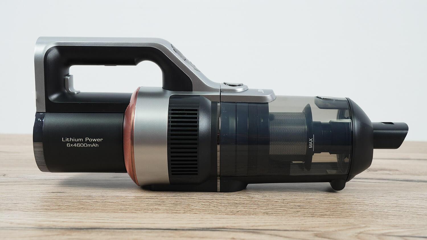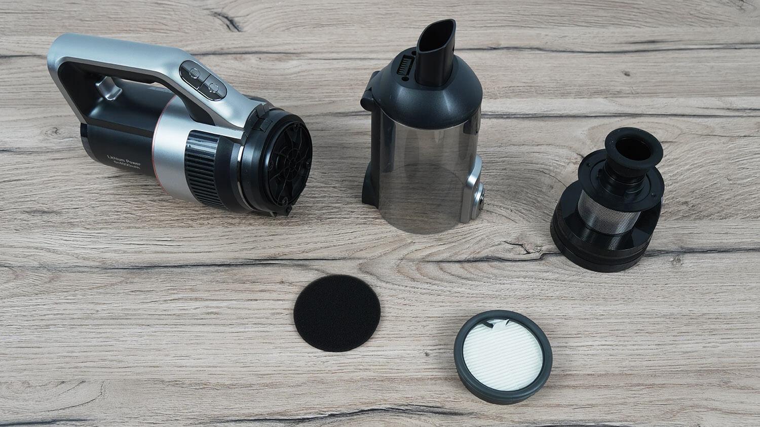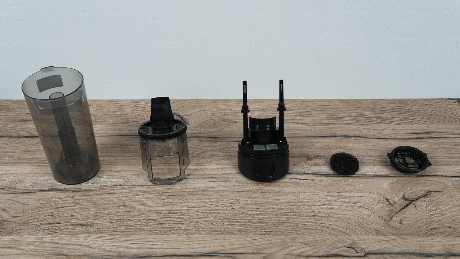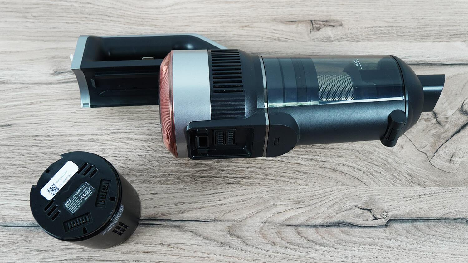 Kaip minėta anksčiau, rankinis dulkių siurblys su variklio skyriumi yra nuimamas.