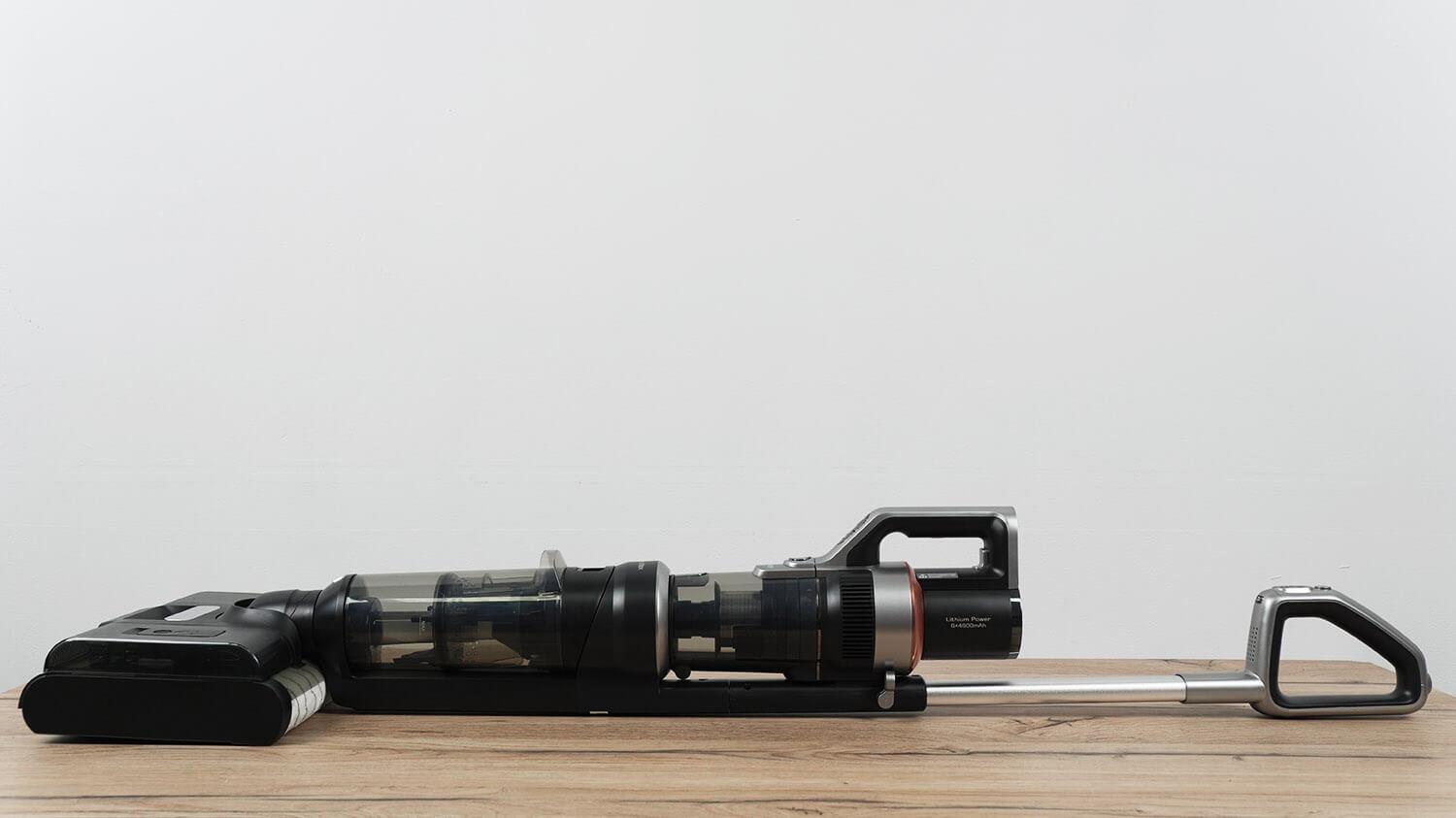 Svarbu atkreipti dėmesį, kad dulkių siurblį galima pakreipti iki 180 laipsnių. Tai leidžia valyti po baldais, jei yra pakankamai vietos. Pavyzdžiui, nešvaraus vandens bako rankena yra maždaug 15 cm atstumu nuo grindų. Atkreipkite dėmesį, kad dulkių siurblys neišsijungia pakreipus jį horizontaliai ir toliau veikia. Talpyklos yra sandarios, todėl pakreipus vanduo neprateka.
