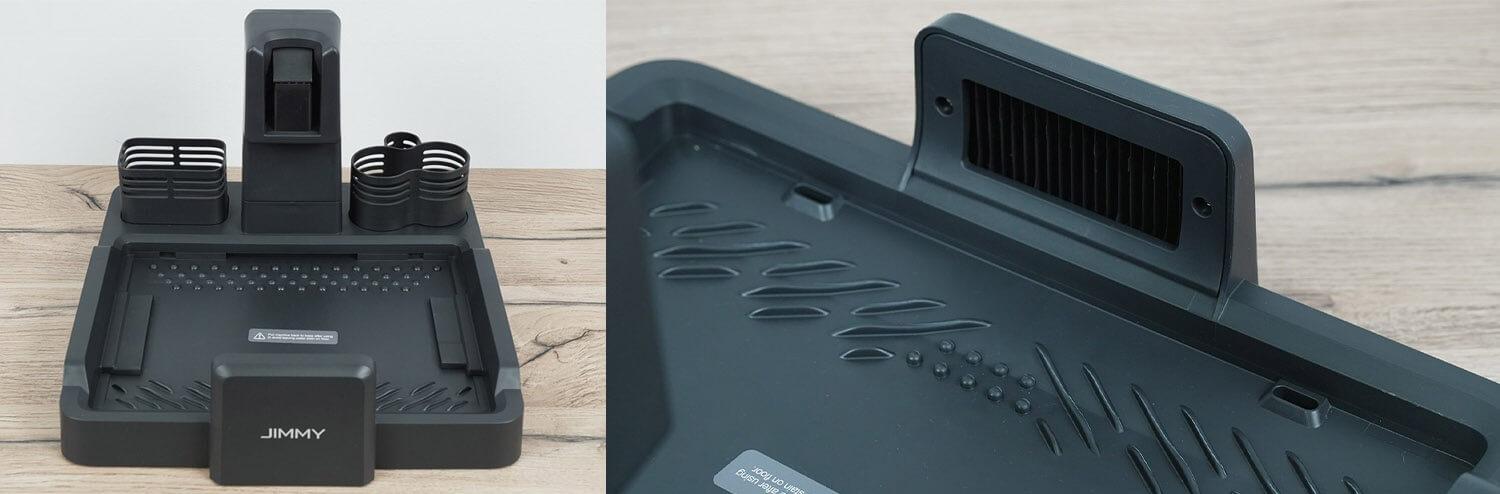 Kalbant apie stotelę, ji įkrauna „Jimmy HW11 Pro Max“, savaime išsivalo volelius ir siurbimo sistemą bei išdžiovina visus komponentus šiltu oru. Jie pridėjo šildomo oro, o tai yra pliusas. Žvelgdamas į ateitį, noriu pasakyti, kad volelių džiovinimas buvo išbandytas ir iš tiesų yra efektyvus.