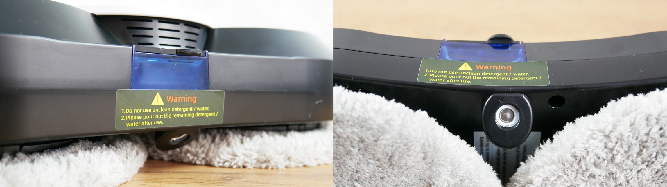 Tarp šluosčių yra antgalis vandeniui purkšti ant darbinio paviršiaus. Gamintojo teigimu, jis naudoja ultragarsinį purškimą. Virš jo yra nedidelis rezervuaras su sandariu vožtuvu, į kurį pilamas vanduo arba speciali valymo priemonė. Rezervuare telpa iki 30 ml skysčio, kurio pakanka 10–20 kvadratinių metrų plotui.