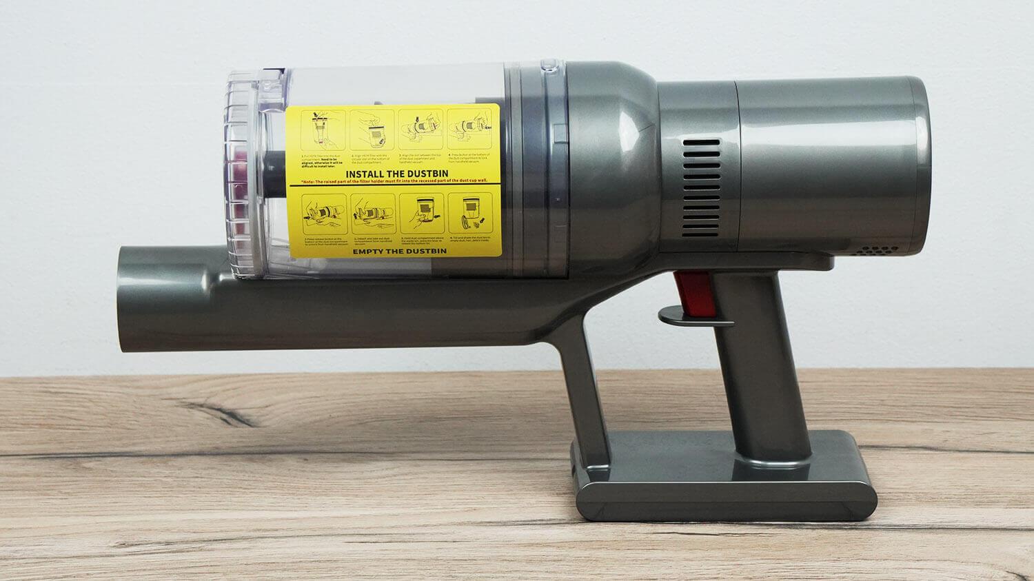 Dabar pažvelkime į „Liectroux i10“ dizainą. Jis padengtas grafitu, o korpusas padengtas „Dyson“ stiliaus dėmėmis. Jame įmontuotas 250 vatų variklis, generuojantis iki 27 000 paskalių siurbimo galią.