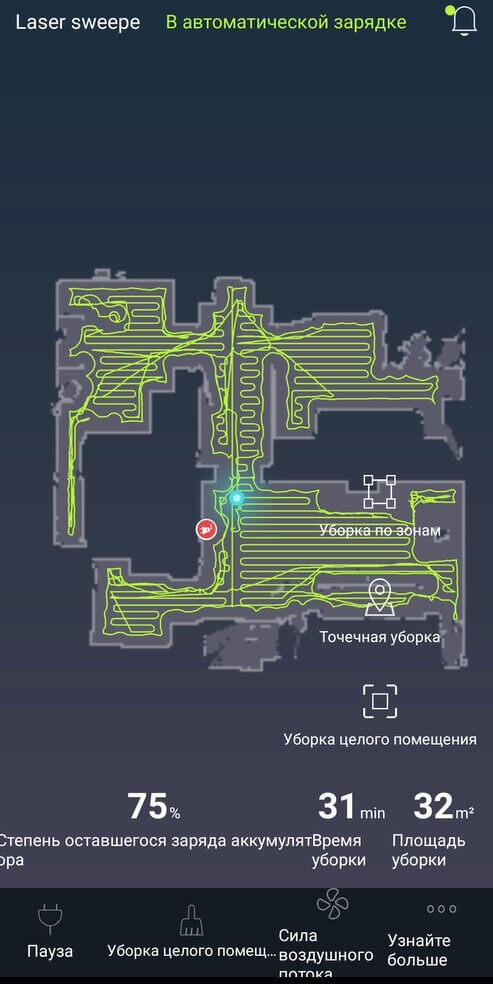 Žemėlapių tikslumas yra didelis, o valymo greitis taip pat geras. Robotas išvalė 32 kvadratinius metrus per 31 minutę. Dėl navigacijos nusiskundimų nėra.