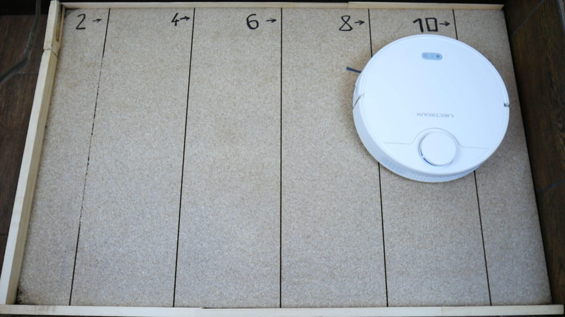 Robotas gerai išsiurbė dulkes iš 2 mm gylio įtrūkimo (su sumontuotu centriniu šepečiu), bet iš kitų įtrūkimų nepavyko. Tačiau dauguma robotinių dulkių siurblių veikia panašiai, kartais net prasčiau. Kaip bebūtų keista, be turbo šepečio jis dar blogiau išsiurbia įtrūkimus.