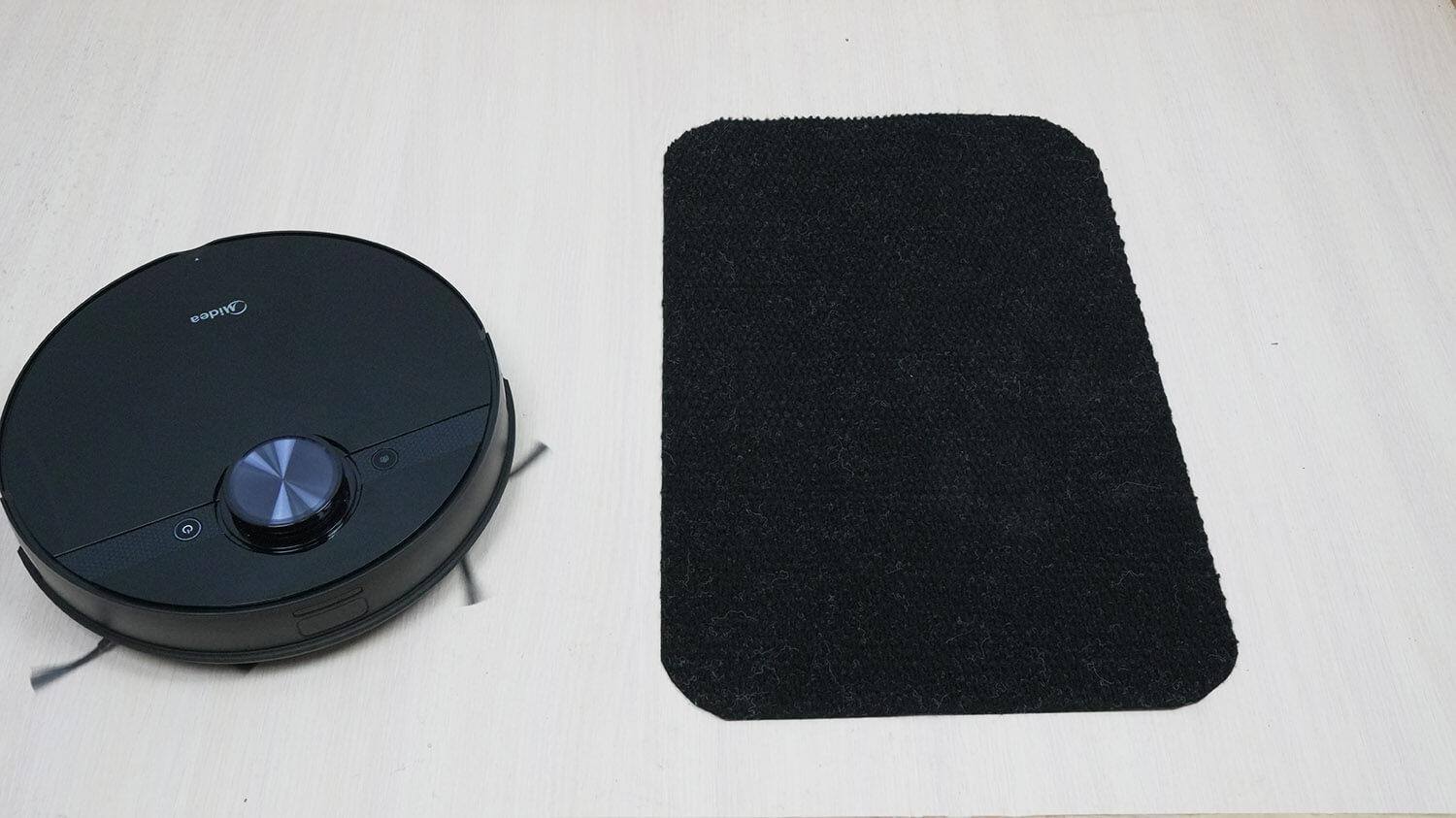 Robotas atsargiai reaguoja į juodus kilimus, juos aptinka pagal aukščio skirtumus. Į tai taip pat verta atsižvelgti.