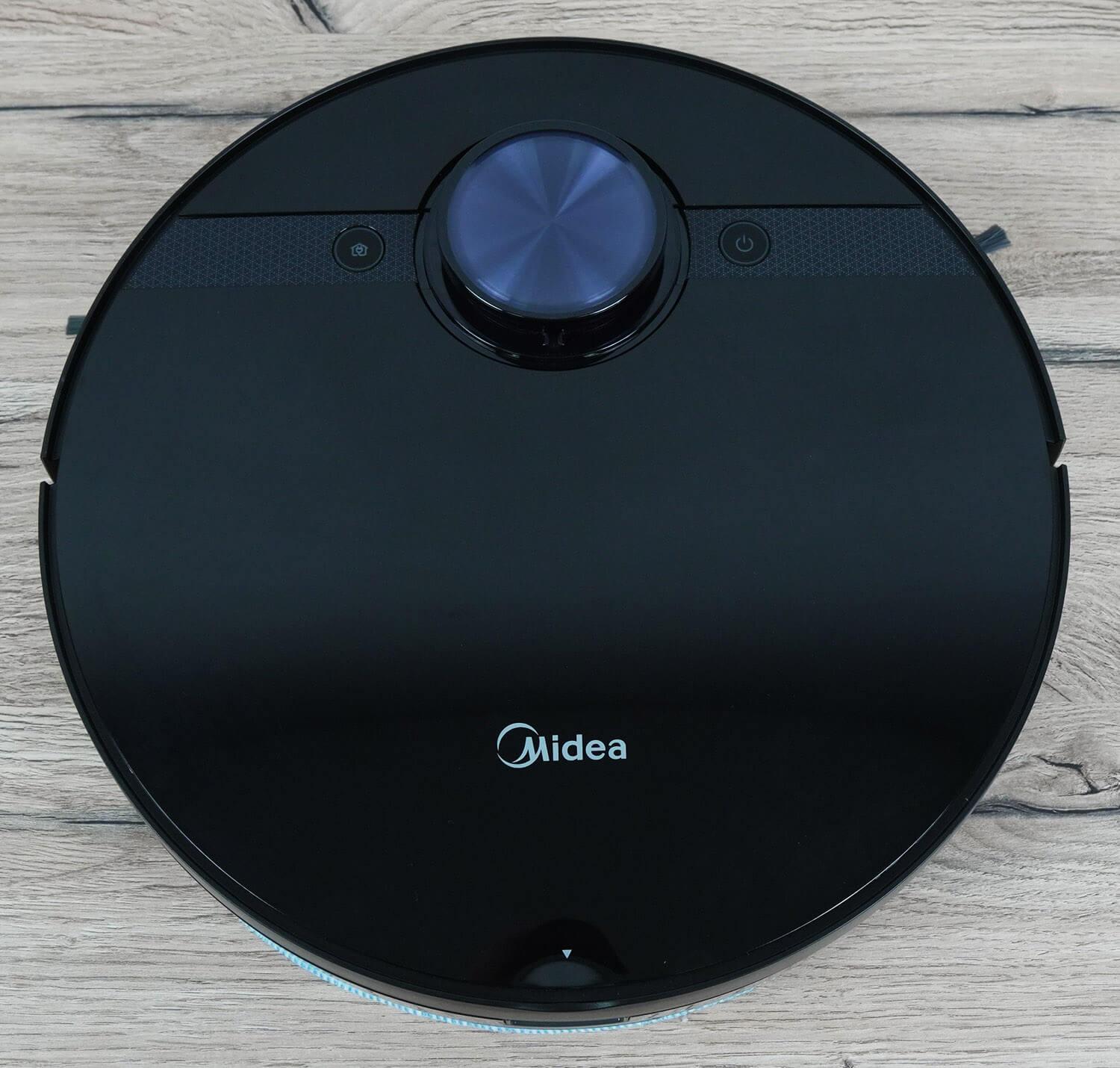 Dabar pažvelkime į „Midea VCR M7 EVO“ dizainą. Jis yra juodos spalvos ir turi apvalų korpusą.