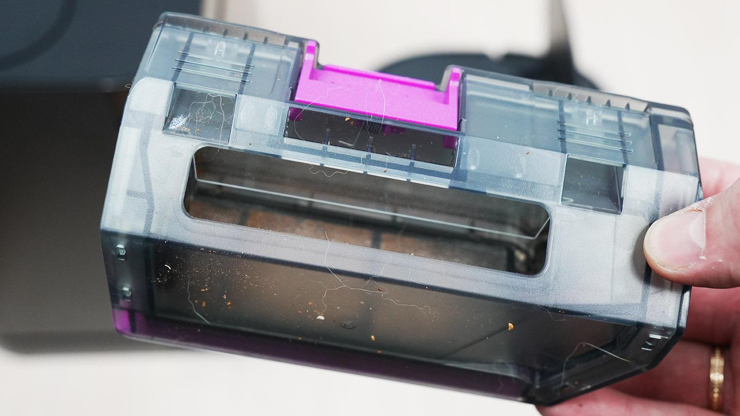 Iškart po „nešvarumų testų“ patikrinau, kaip gerai robotas dulkių siurblys išsivalo. Grąžinau jį į stotelę ir pradėjau savaiminio valymo procesą. Rezultatai buvo geri. Dulkių surinktuvas buvo tuščias, todėl šio roboto savaiminio valymo funkcija veikia gerai!