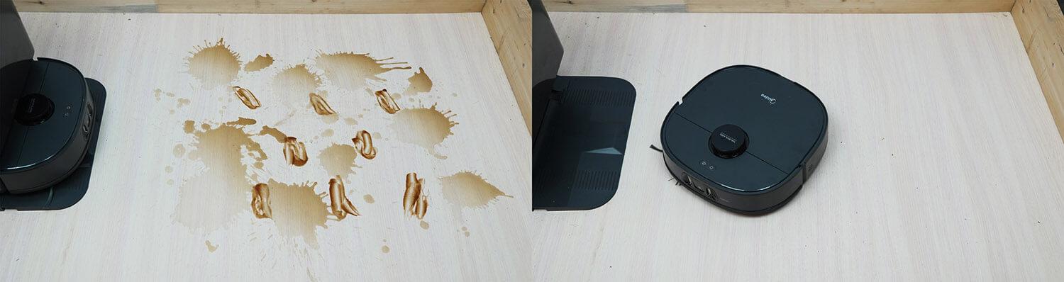 Kalbant apie sunkiai įveikiamų dėmių šalinimą, robotas netgi sugebėjo pašalinti pridžiūvusias kavos ir padažo dėmes. Tiesa, ne iš pirmo karto. Tiksliau, iš 11-o. Rezultatas yra šiek tiek silpnesnis nei standartinis, kuriam paprastai reikia 10 plovimų. Tačiau verta paminėti, kad šis modelis dėmes pašalina geriau nei jo pirmtakas V12, kuriam prireikė 13 plovimų.