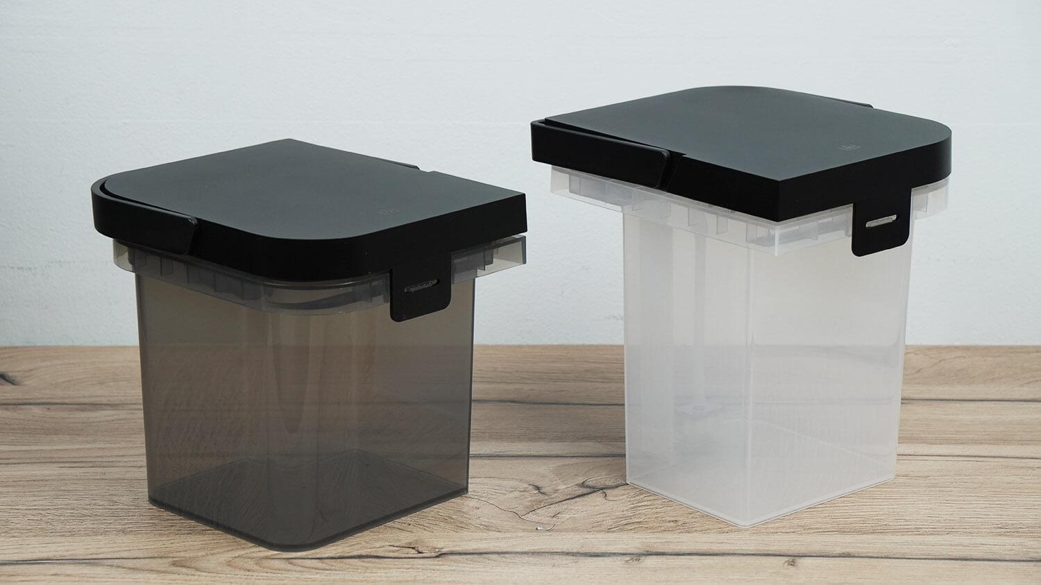 Dulkių surinktuvas yra po viršutiniu dangčiu. Jo talpa yra tik 170 ml. Viršutinė dalis rodo, kad filtravimo sistemą galima plauti vandeniu.