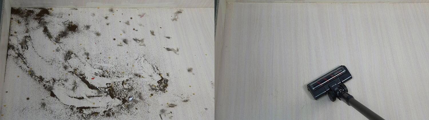 Kalbant apie siurbimo galią, esant mažiausiam nustatymui, „Miko V15“ sugebėjo išsiurbti šiukšles iš visų plyšių, įskaitant ir 10 mm gylio. Tačiau verta paminėti, kad esant mažiausiam nustatymui, jis išvalė tik iš dalies 10 mm plyšį, o esant vidutiniam nustatymui užduotį atliko visiškai. Šio dulkių siurblio siurbimo galia yra didelė ir puikiai tinka naudoti namuose.