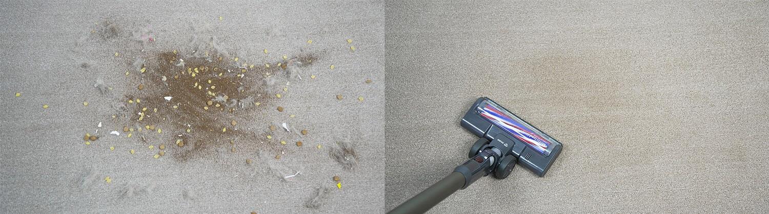 - Aukštos kokybės atliekų surinkimas be aklųjų zonų ant bet kokio paviršiaus, įskaitant kilimus.