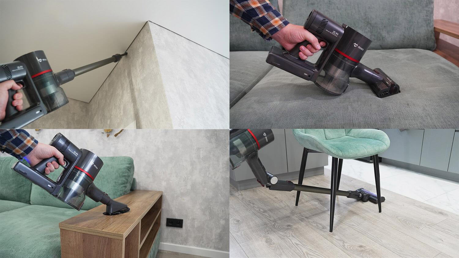 Taip pat verta paminėti, kad papildomi priedai leidžia išvalyti vietas, kurių nepasiekia pagrindinis antgalis, įskaitant automobilių salonus, sofas ir po žemais baldais dėl lanksčios jungties. Apskritai šis dulkių siurblys tinka įvairiems tikslams.