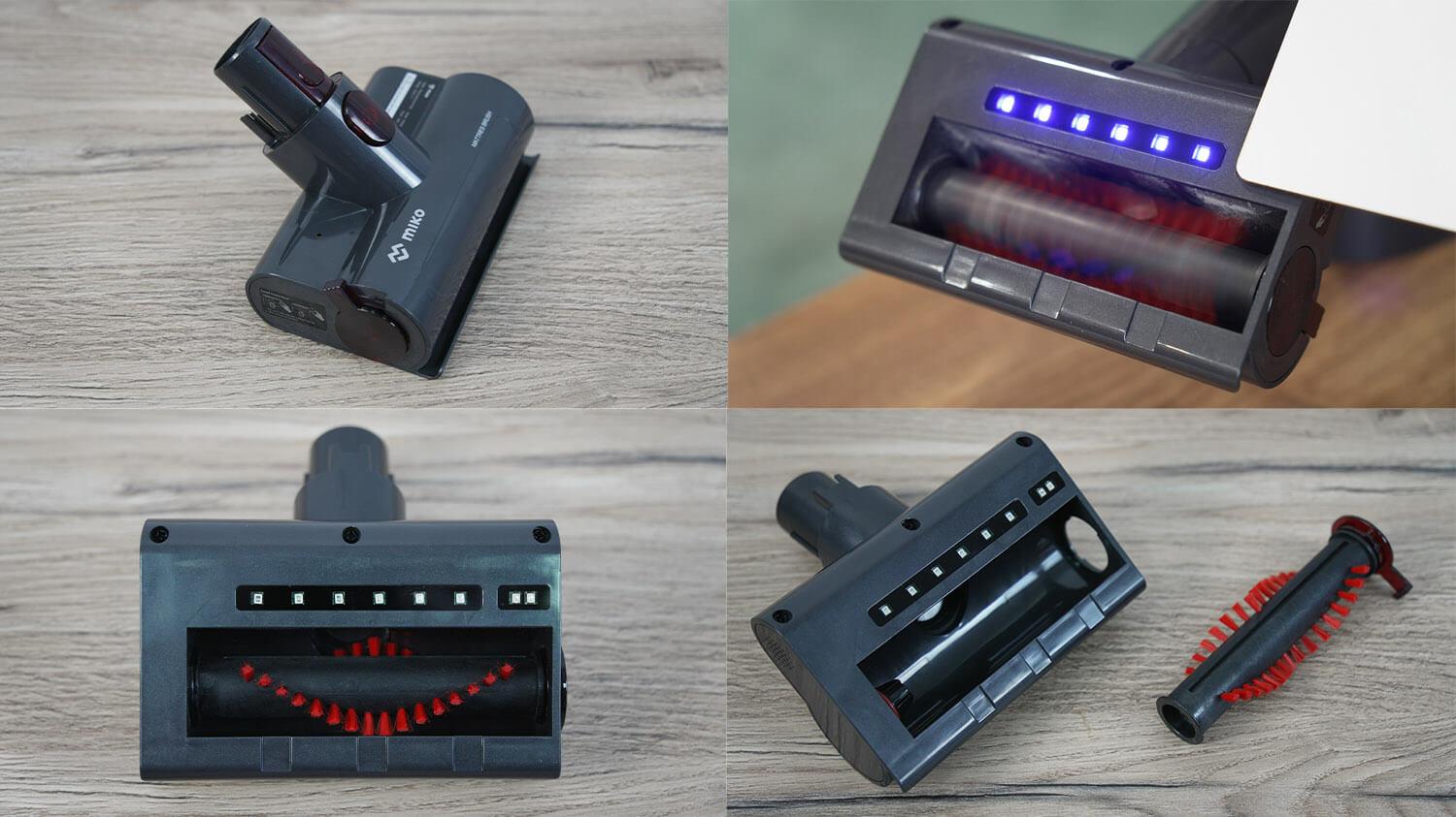 Pažvelkime į papildomus pridedamus priedus. Mini turbo šepetys gali būti naudojamas minkštiems baldams, čiužiniams valyti ir dulkių erkutėms šalinti. Kaip minėta anksčiau, šis priedas turi UV lempą ir paviršiaus aptikimo jutiklius. Lempa įsijungia tik tada, kai priedas paliečia paviršių. Negaliu patikrinti jo efektyvumo, bet verta paminėti. Volelis turi lanksčius šerelius ir jį galima lengvai nuimti rankomis be jokių įrankių. Labai patogu.