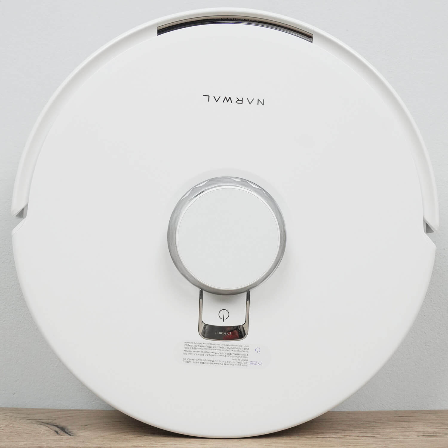 Dabar pažvelkime į „Narwal Freo X Ultra“ dizainą. Pradėkime nuo paties roboto dulkių siurblio. Jis apvalus, baltas ir 107 mm (4,1 colio) aukščio.