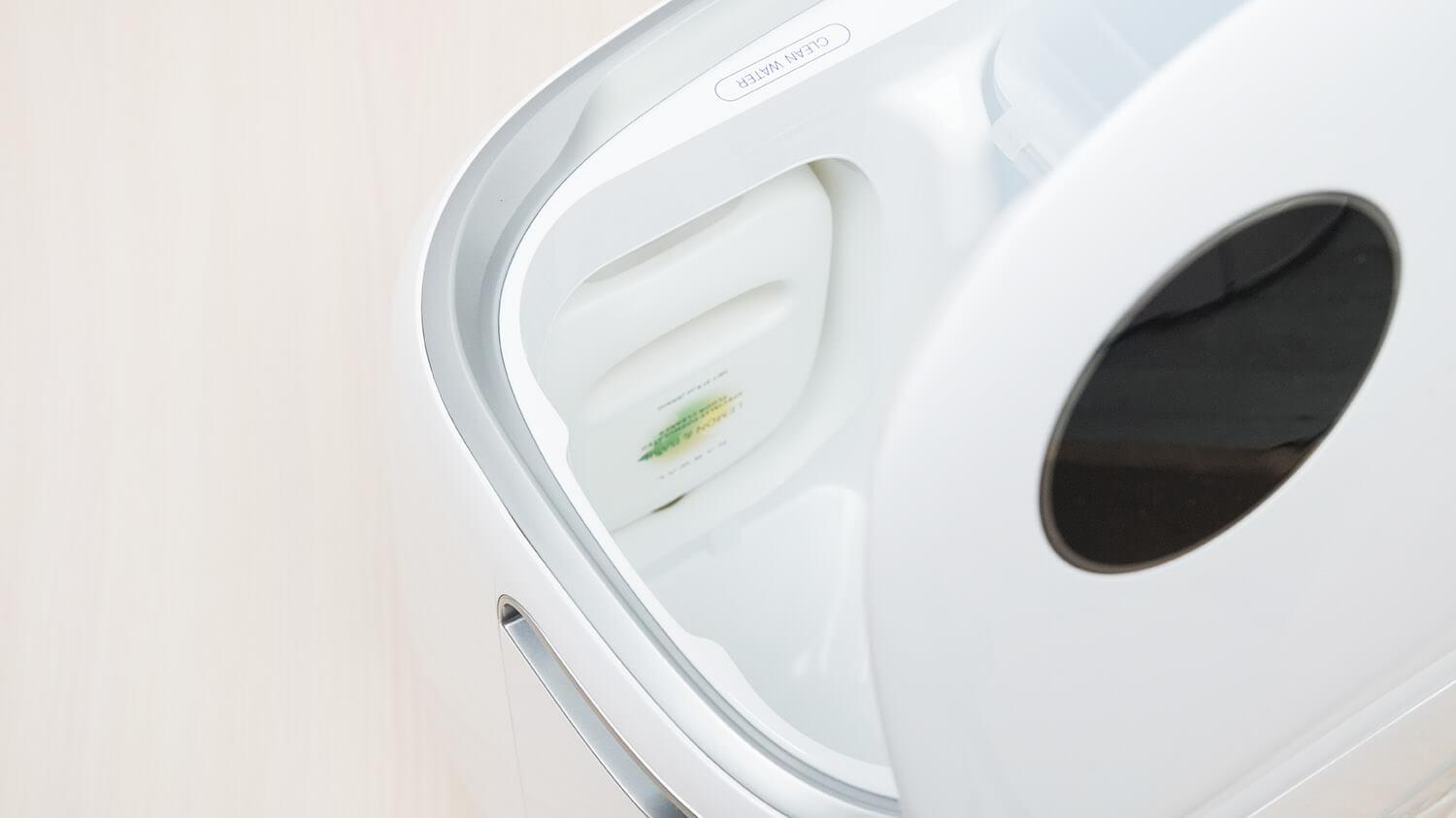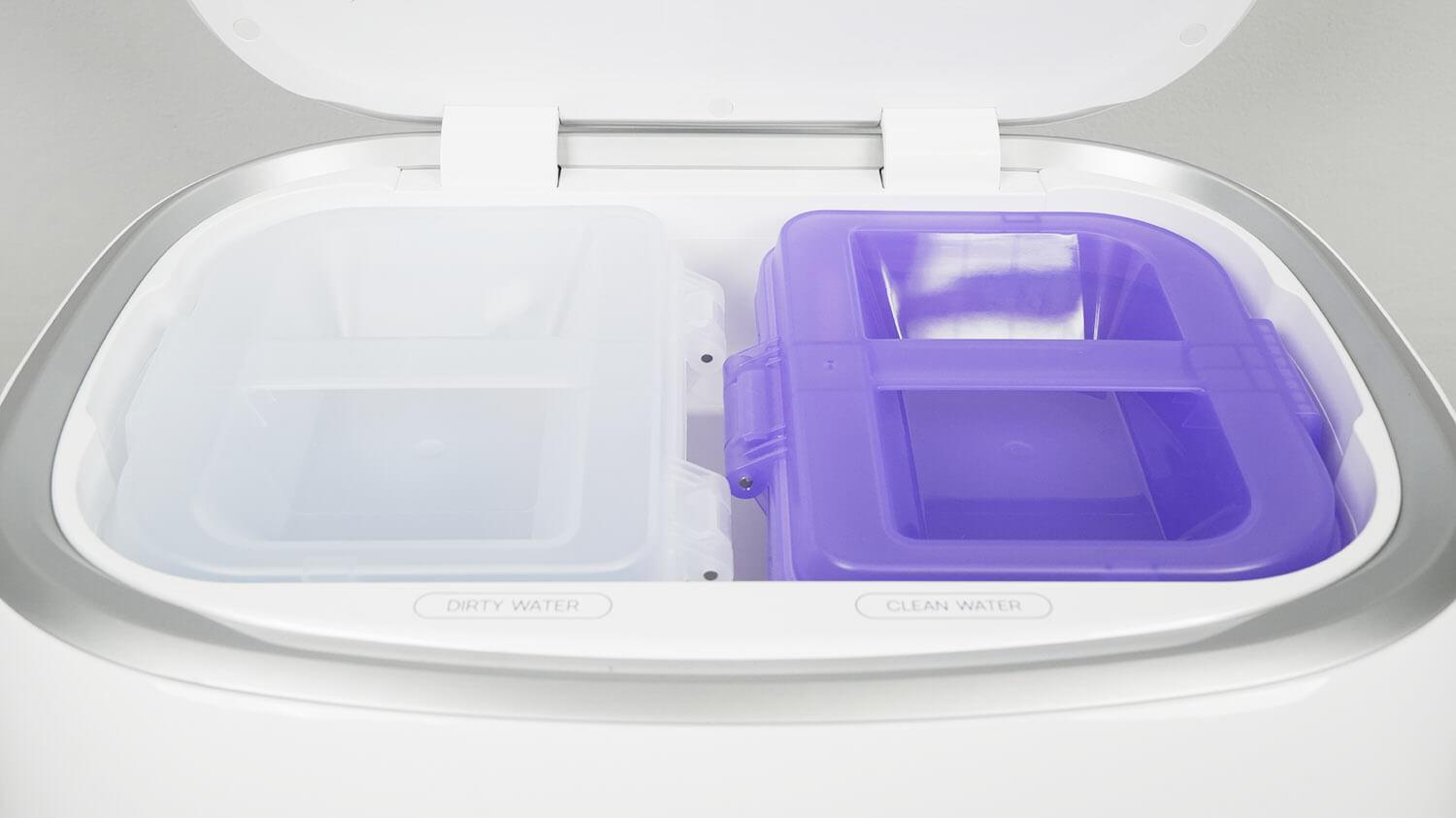 Viršuje yra erdvūs vandens rezervuarai, kurių kiekvienos talpa yra 4 litrai.