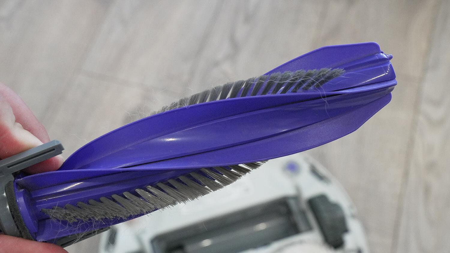 Pažvelkime į valymo modulio būklę. Šoninis šepetys patyrė didžiausią smūgio jėgą, o už centrinio šepečio užkliuvo keli plaukai. Norint įvertinti jo efektyvumą, reikia atlikti tolesnius bandymus.