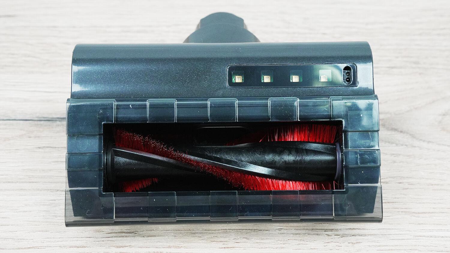 Dulkių siurblys įjungiamas ir išjungiamas paspaudus paleidimo mygtuką. Jo laikyti nuspausto nereikia. Viršuje yra jutiklinis valdymo skydelis. Galios lygis keičiamas braukiant pirštu, o tam reikia naudoti kitą ranką, o tai nėra labai patogu. Yra galios lygio indikatorius, techninės priežiūros indikatoriai ir akumuliatoriaus įkrovos procentų ekranas.