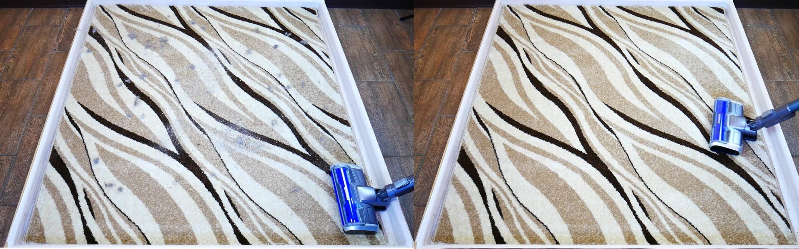 „REDMOND RV-UR380“ gerai valė kilimus, įskaitant ir patį kilimą. Nors volelis mažiau tinka kilimams valyti, jis vis tiek veikė efektyviai.