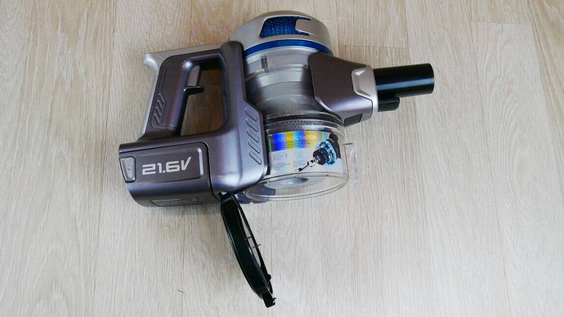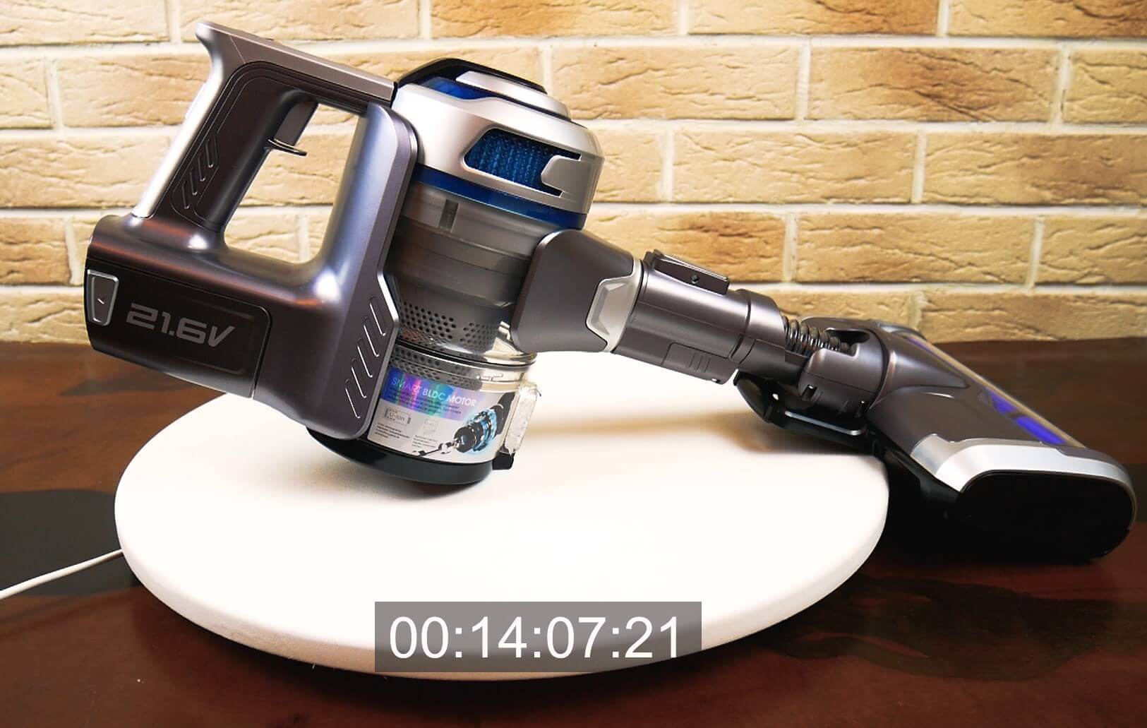 Baterija veikė kiek daugiau nei 14 minučių. Tai geras rezultatas; rankiniai dulkių siurbliai paprastai veikia apie 10 minučių turbo režimu.