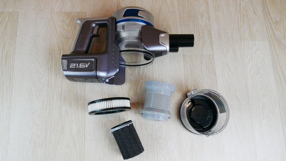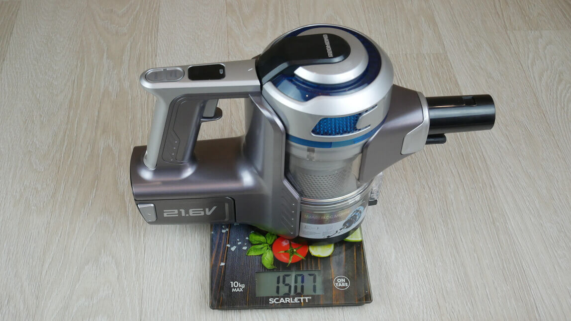 Beje, pats pagrindinis įrenginys sveria 1507 gramus. Prailginimo vamzdis sveria 304 gramus, o pagrindinis antgalis – 755 gramus. Pilnai surinktas dulkių siurblys sveria kiek daugiau nei 2,5 kg. Tai gana standartinis rankinių dulkių siurblių svoris. Su pritvirtintu plyšių antgaliu, be prailginimo vamzdžio, jis sveria 1555 gramus, todėl juo patogu valyti baldus vietoje.