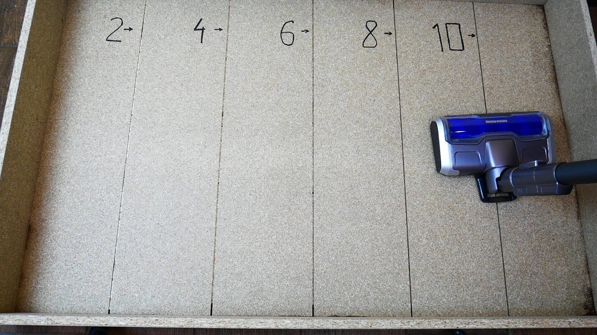 Specialiu stovu patikrinsime, kokio gylio įtrūkimus gali išsiurbti šis rankinis dulkių siurblys.