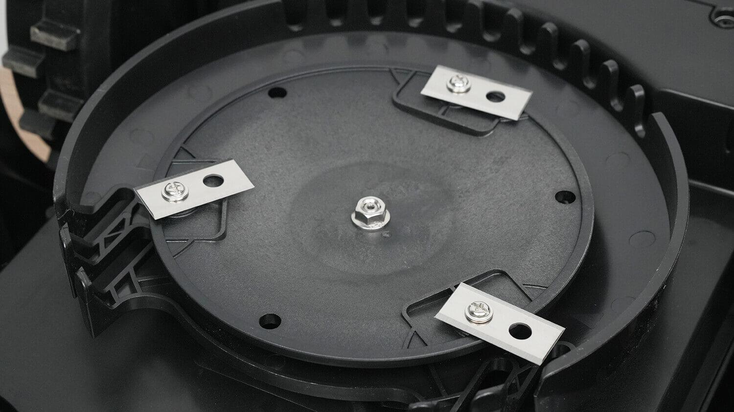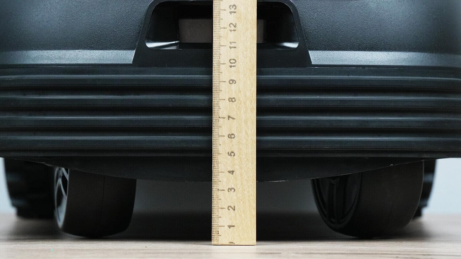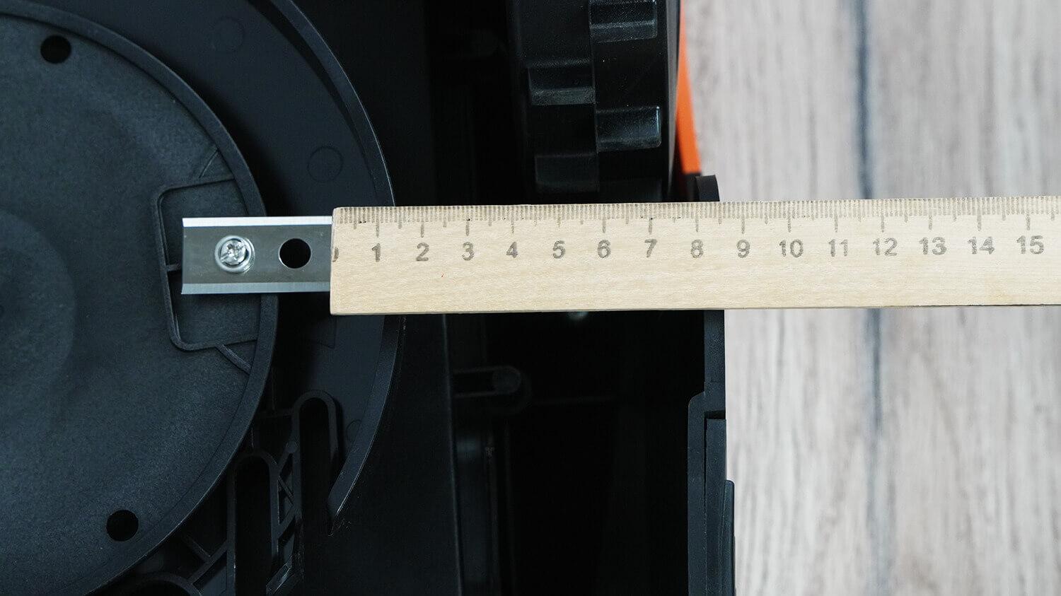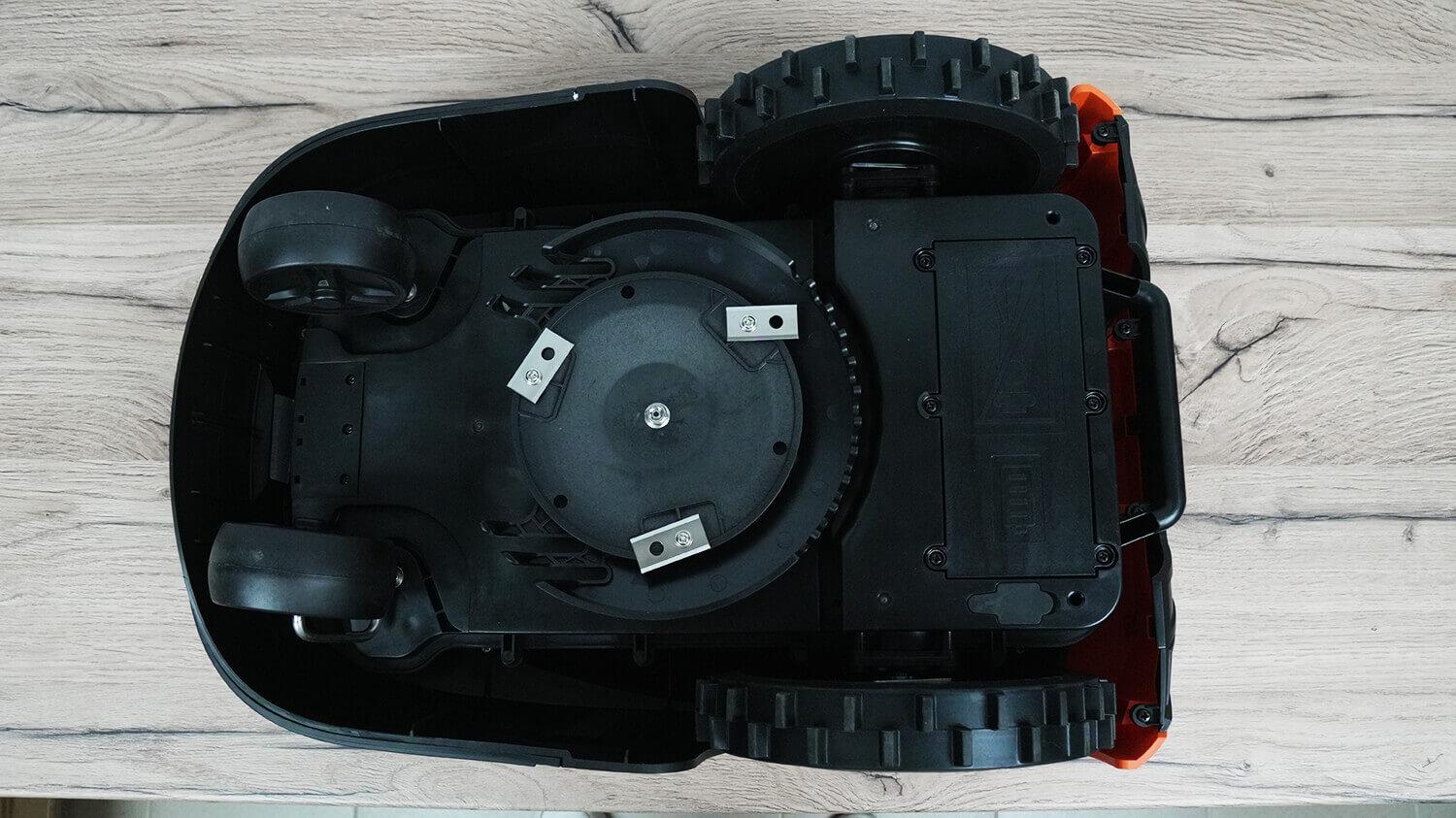 Jis yra korpuso centre, todėl iš karto tampa aišku, kad robotas turės akląją zoną nuo peilių krašto iki korpuso krašto, kurios plotis yra apie 9,5 cm.