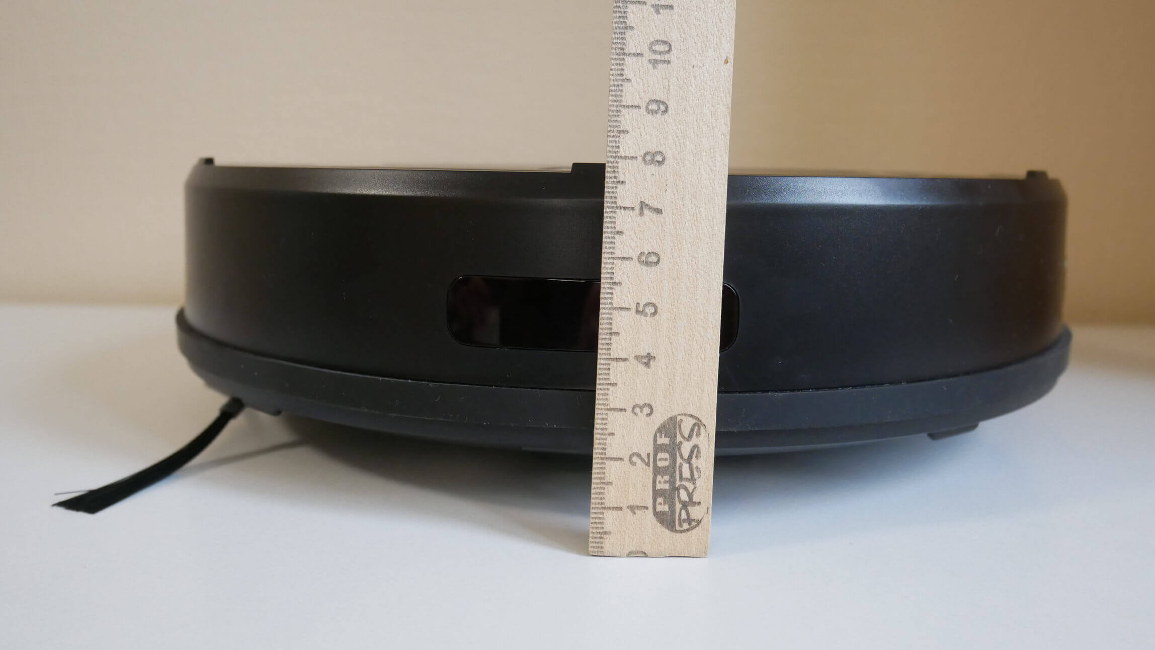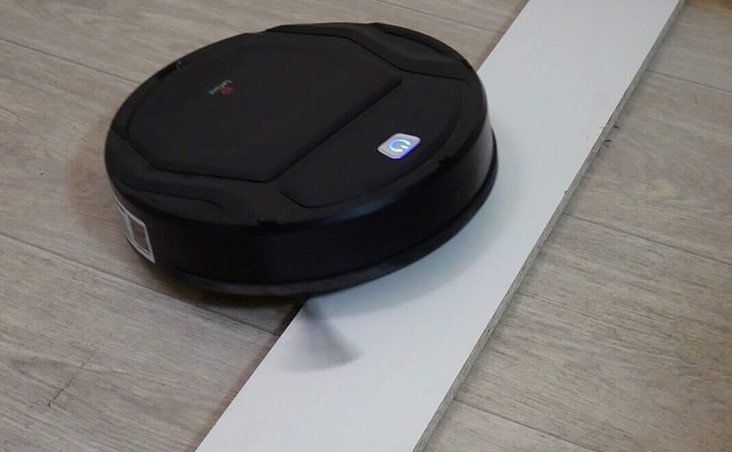 Tačiau robotas nebijo tamsių paviršių ir juda per juos be jokių problemų, net jei tai yra aukščio skirtumai. Tai yra pliusas.
