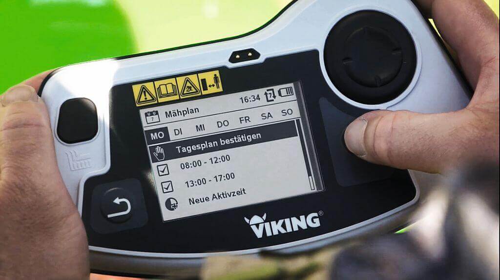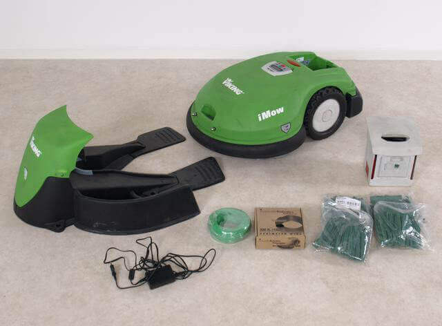„Viking iMow“ robotinių vejapjovių konstrukcijos ypatybės panašios į „Husqvarna“, „Gardena“ ir „Bosch“. jų veikimo principas Iš esmės, tai niekuo nesiskiria. Komplektą sudaro įkrovimo stotelė ir ribojimo laidas, apibrėžiantis vejos pjovimo perimetrą.