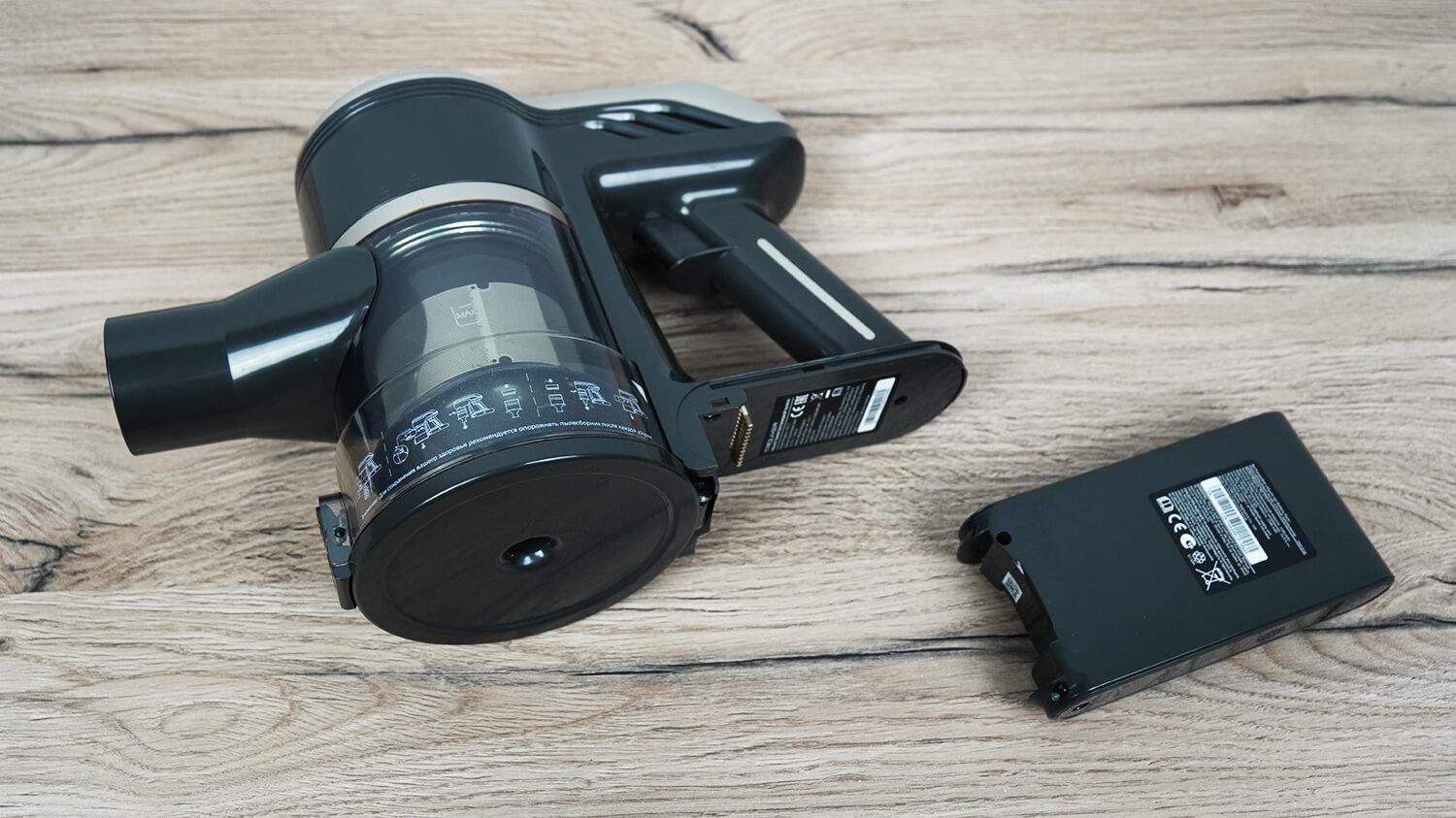 Dulkių talpykla yra nuimama, kad būtų lengva ją prižiūrėti. Dulkių talpyklą taip pat galite ištuštinti paspaudę apačioje esantį atleidimo mygtuką. Filtravimo sistemą sudaro HEPA filtras, putplasčio filtras, multicikloninė sistema, sudaryta iš 10 ciklonų, ir tinklelio filtras. Dulkių talpyklos talpa yra 500 ml.