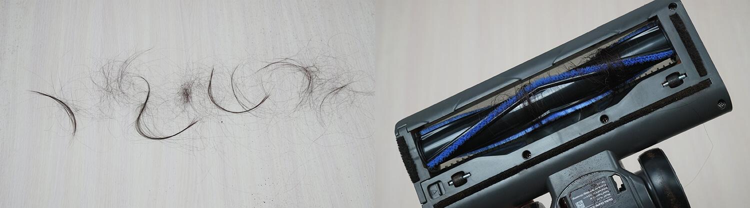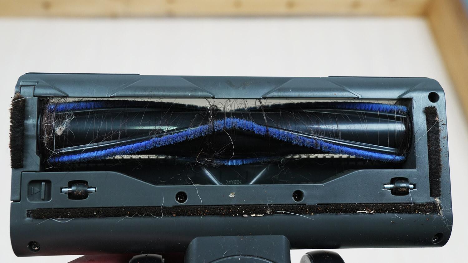Taip pat išbandžiau, kaip gerai šukos išpainioja suktuką. Ant grindų patiesiau įvairaus ilgio plaukus ir juos išsiurbiau. Matėme, kad plaukai buvo susivėlę aplink suktuką. Taigi, apsaugos nuo susivėlimo sistema nėra labai efektyvi. Tačiau turbo šepečio valymas rankiniu būdu kas kelis valymus neturėtų būti per sudėtingas.